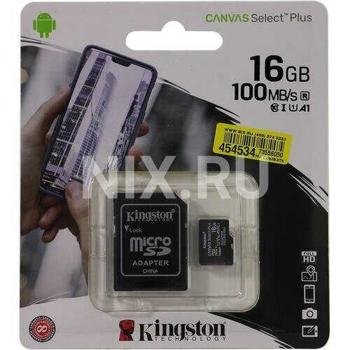 Купить Карта памяти16Gb MicroSD Kingston Canvas Select Plus SDCS2/16GB