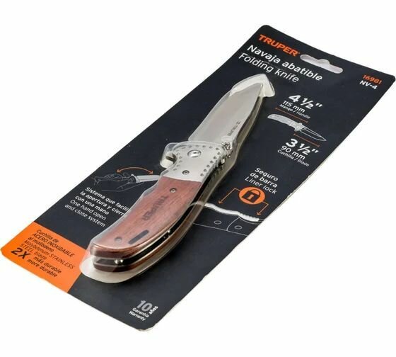 Нож складной. Лезвие из нержавеющей стали. Рукоятка из дерева. Лезвие-9 см. Truper NV-4 16981