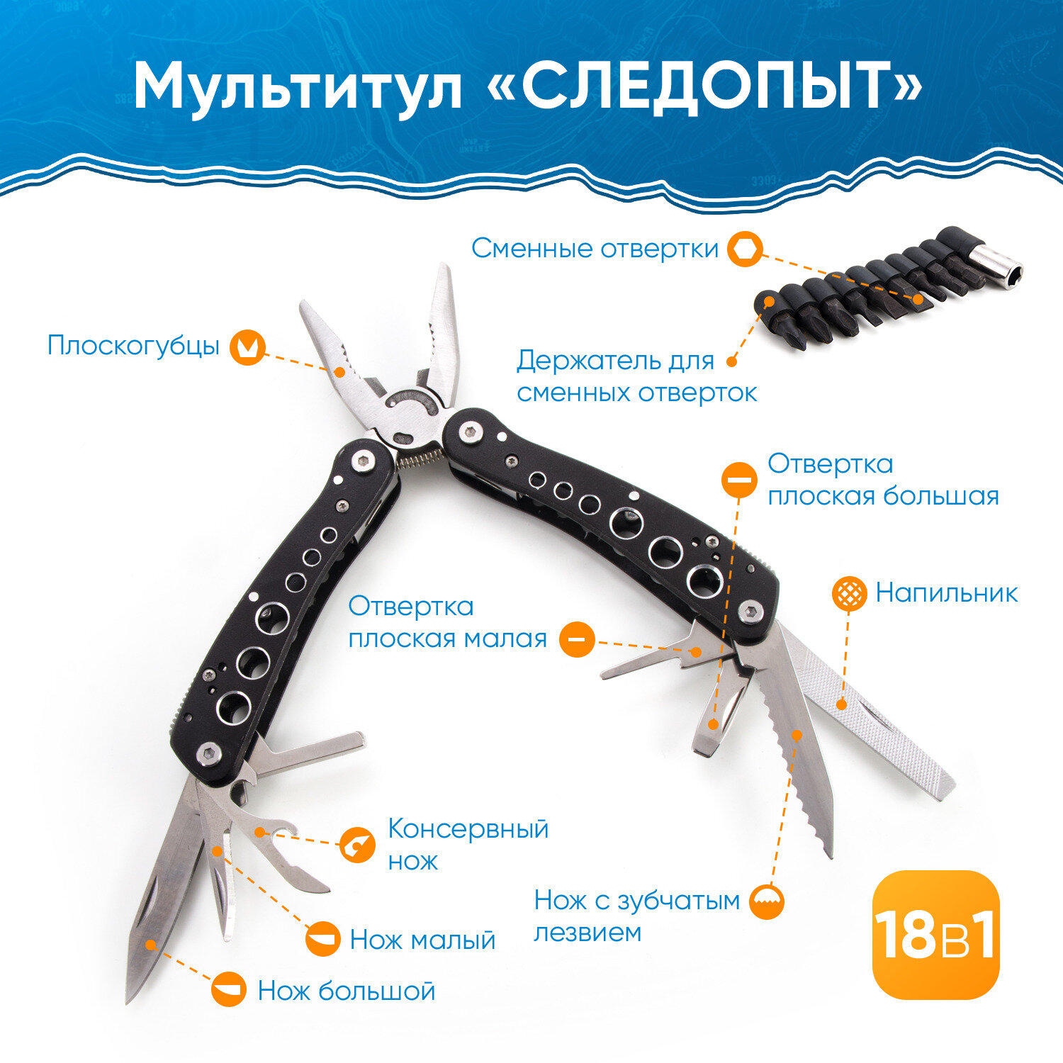 Мультитул-плоскогубцы следопыт, 18 предметов, черный