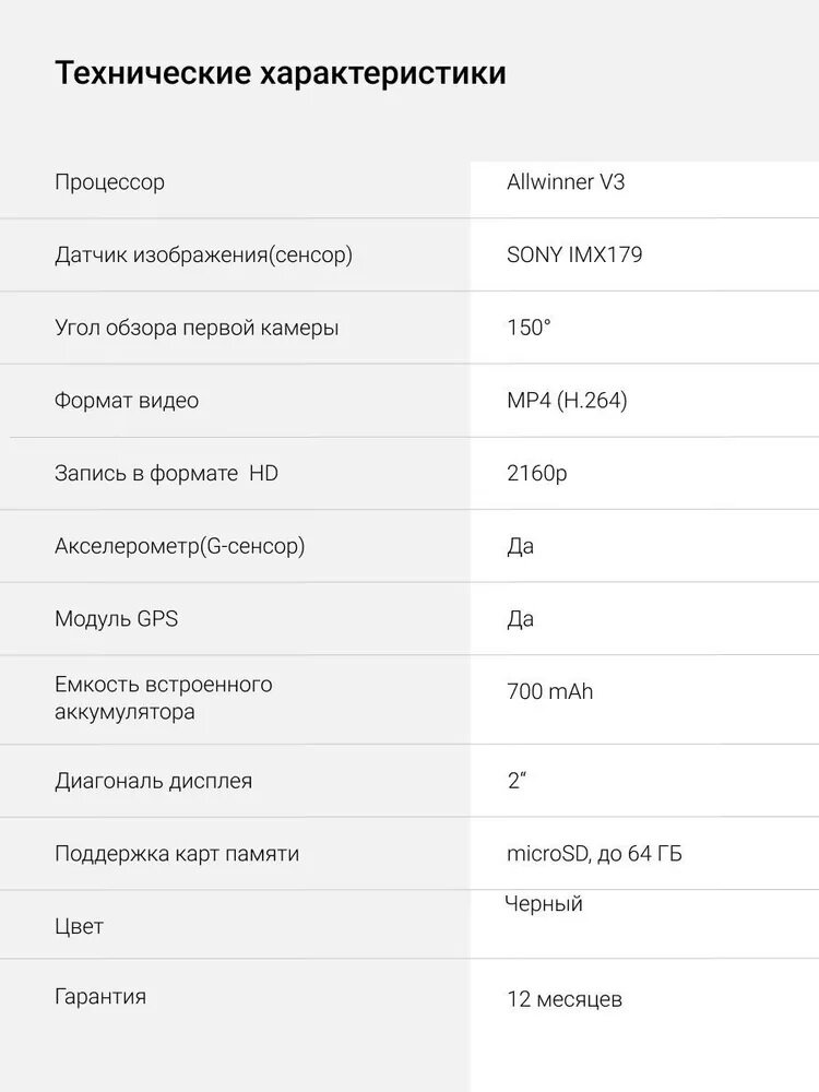 Комплектация хорошая(хотелось бы ещё кабель HDMI, но его нет) провод к прикуривателю очень длинный с удобным удлинненым micro USB, качество исполнения на высоте, ни чего не люфтит. Аквабокс на твердую 5, воду не пропускает, кнопки нажимаются.. Для авторегистратора в режиме Full HD 1920?1080 с частотой кадров 59,96/сек. пишет ролики по 18 минут размером 3,6 гига, днем очень достойно(даже лучше чем у многих более дорогих авторегистраторах, очень удивлен был.), ночью плохо, надо менять в настройках баланс белого, тогда терпимо, но каждый раз перенастраивать геморно. В целом очень доволен покупкой, WiFi работает тоже очень достойно с телефоном обмен на скорости 12-14 мегабит/сек. через 2 кирпичных стены. Телефон Asus Zenfone Max Pro M1, приложение для замера Internet Speed Meter Lite При сопряжении с телефоном отключайте моб. интернет иначе не законектиться. Удобно смотреть через приложение там - же и все настройки камеры удобнее применять. Производитель указал работу WiFi до 100 метров в прямой видимости, не проверял, но по мощности сигнала думаю 50 метров потянет нормально. Звук тоже довольно хорошо пишется, четкий без шумов. Чувствительность микрофона отличная. Фото мне не понравилось, в отличии от видео. Дополнение: Через 5 месяцев вздулся аккумулятор и деформировал корпус камеры. |
