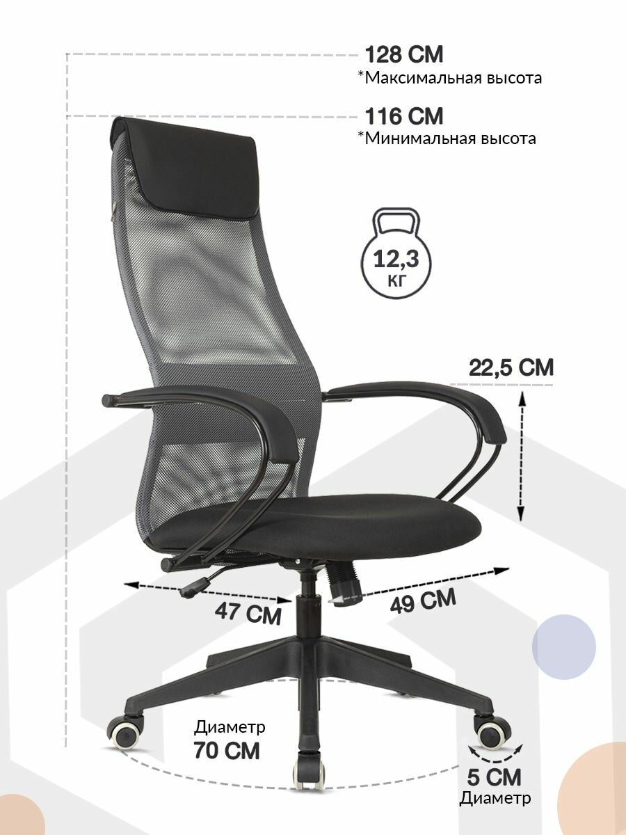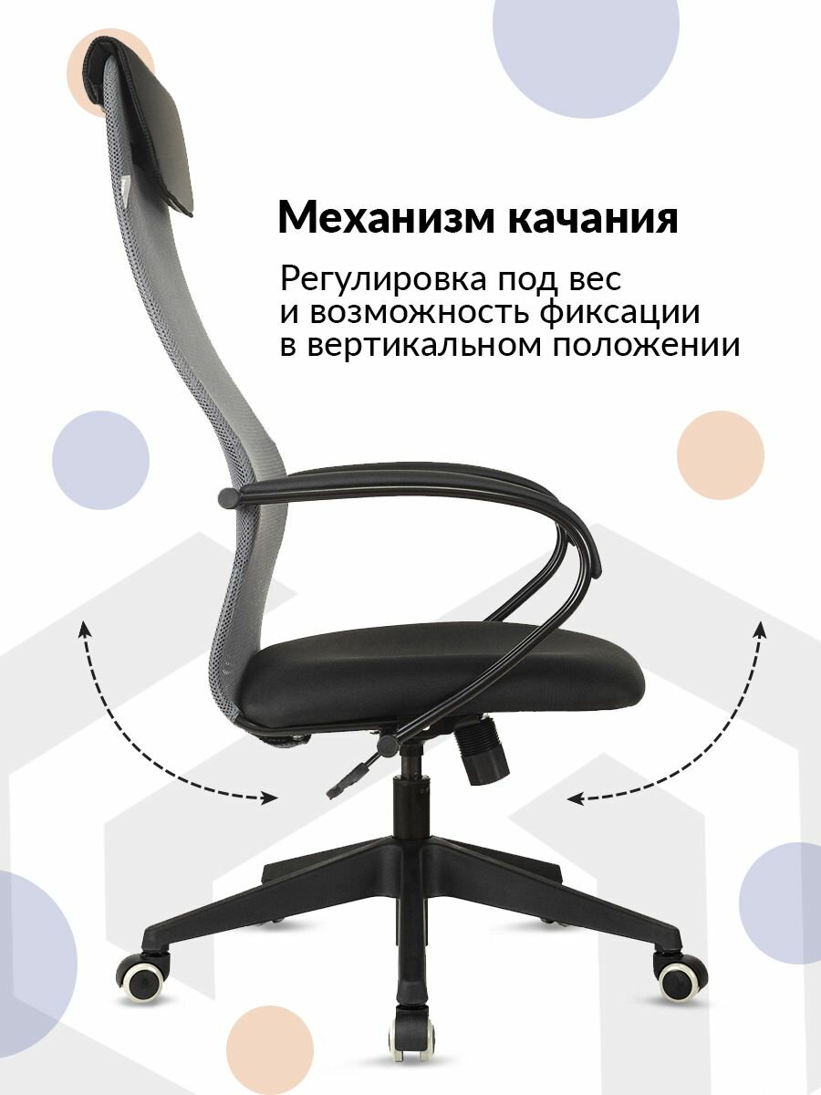 Кресло руководителя Бюрократ CH-607/LGREY черный/серый, сетка/ткань, с подголовником, крестовина пластик