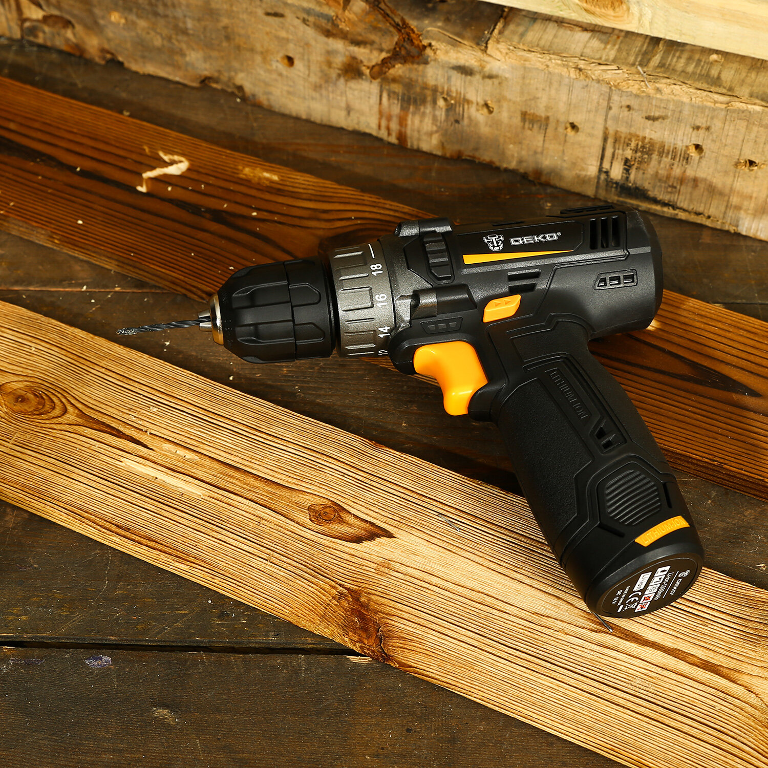 Аккумуляторная дрель Deko GCD12DU3 черно-желтый .