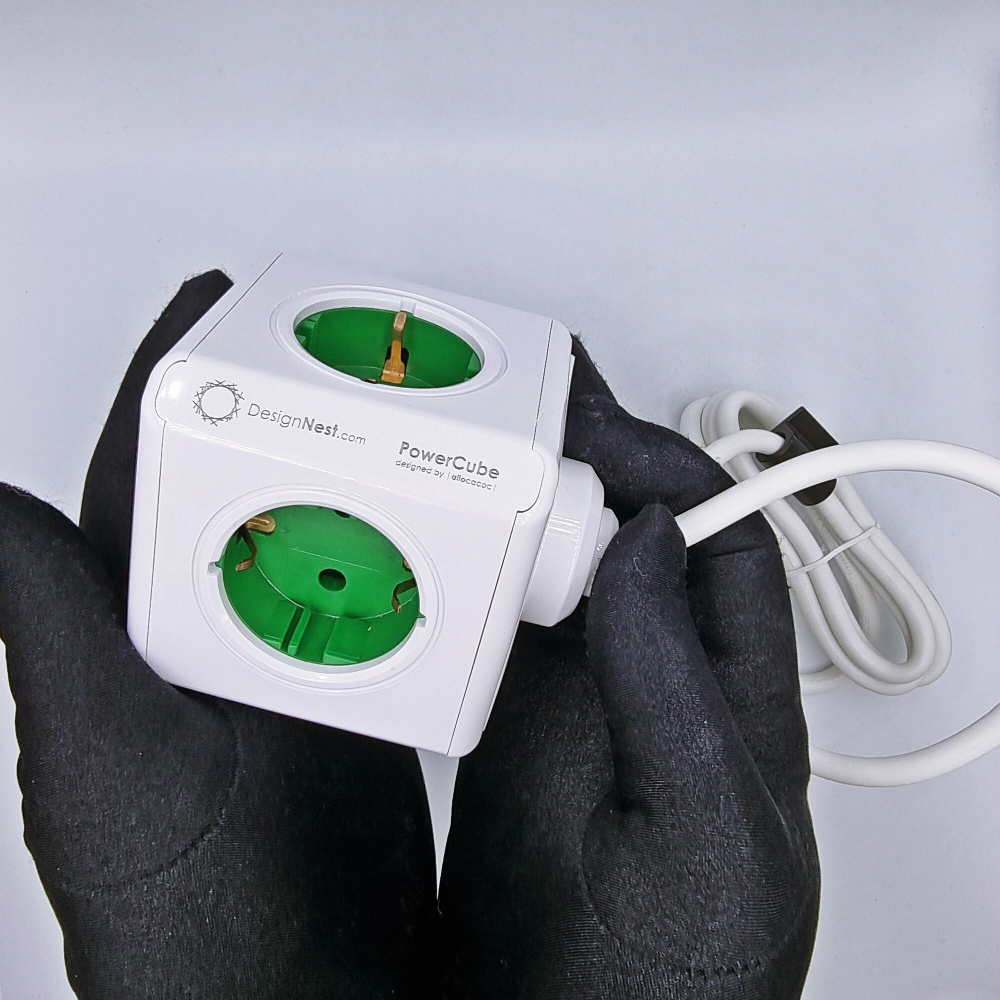 Купить Фильтр сетевой (удлинитель) Allocacoc DesignNest PowerCube Extended GREEN 1300GN/DEEXPC, 5 розеток, провод 1,5 метра, без USB, крепление в комплекте