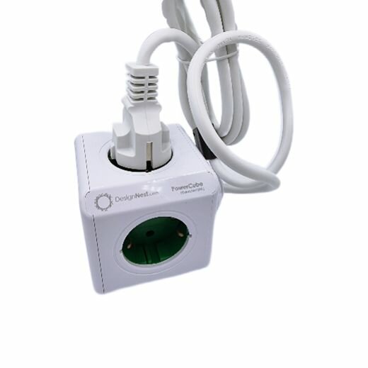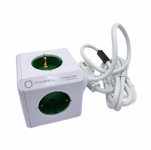 Фильтр сетевой (удлинитель) Allocacoc DesignNest PowerCube Extended GREEN 1300GN/DEEXPC, 5 розеток, провод 1,5 метра, без USB, крепление в комплекте