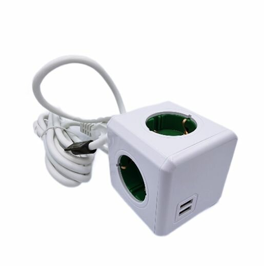 Разветвитель-удлинитель Allocacoc Extended Cube 4 розетки 2 USB 1,5 м Зеленый 1402GN/DEEUPC