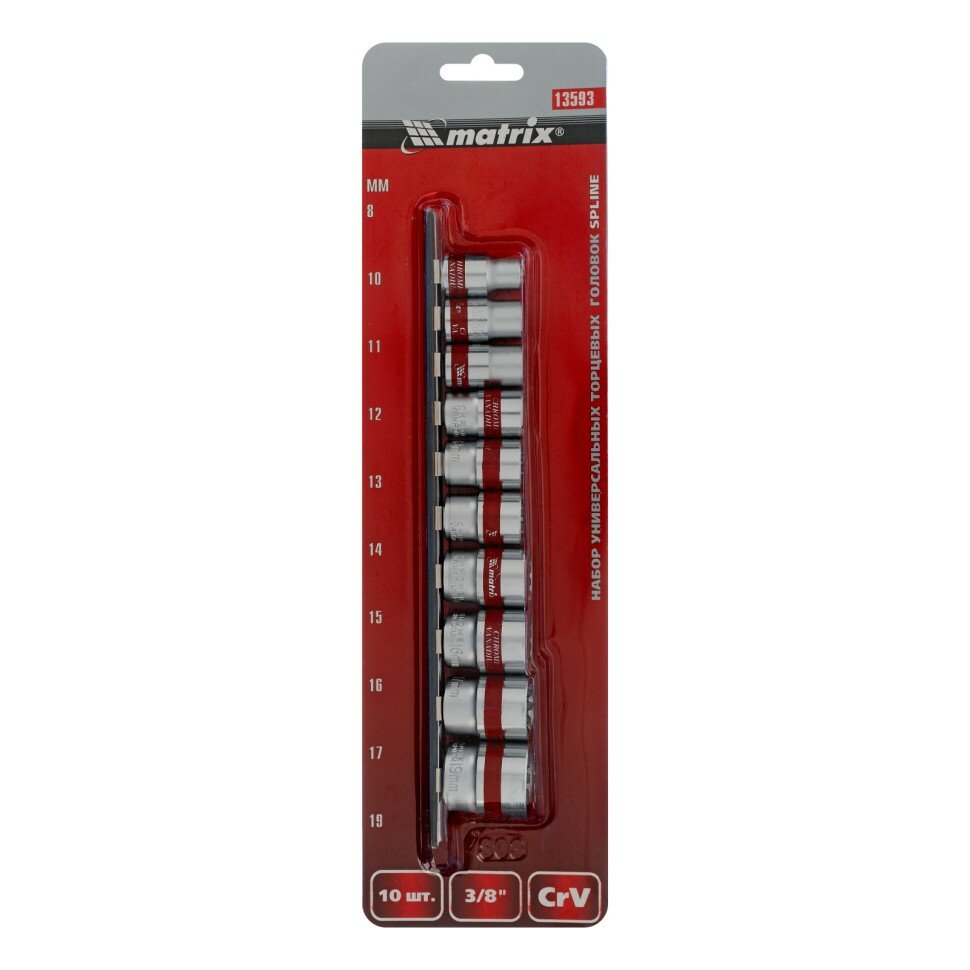MATRIX Набор универсальных торцевых головок 3/8, SpLine, CrV, 10 шт, 8-19 мм Matrix, ( 13593 )