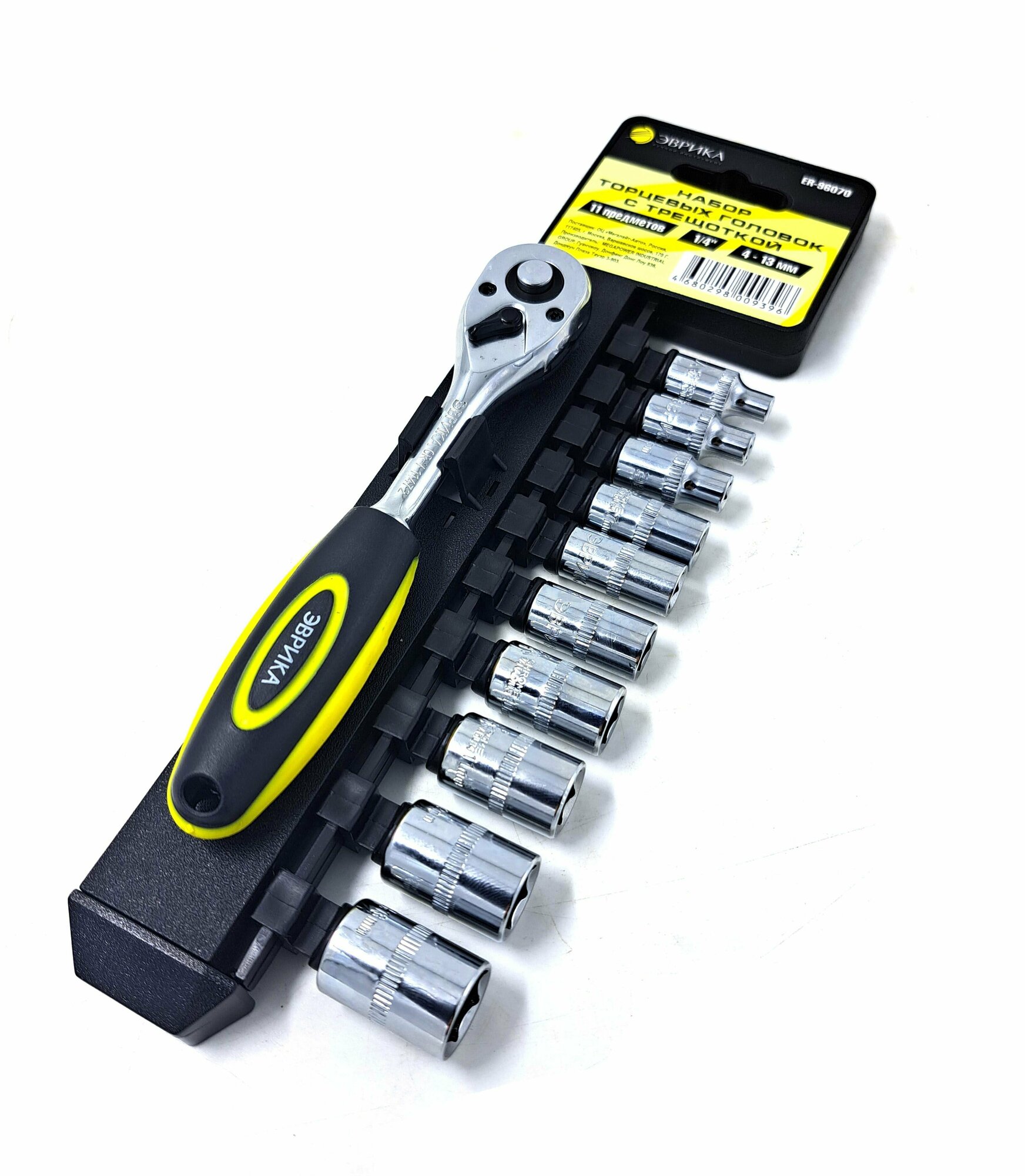 Набор торцевых головок с трещоткой ER-96070 1/4" DR 4-13мм 11 предметов (на держателе) эврика