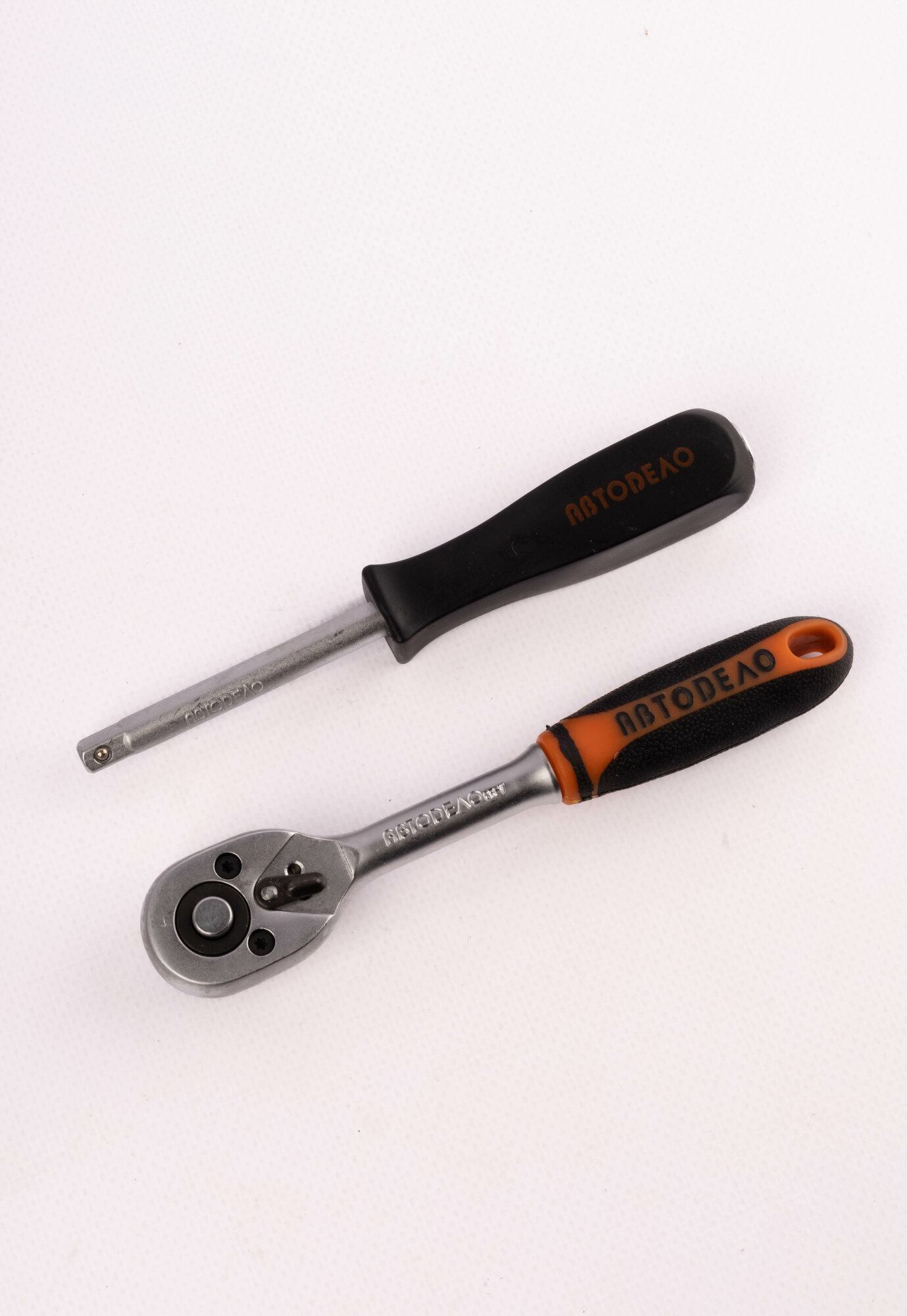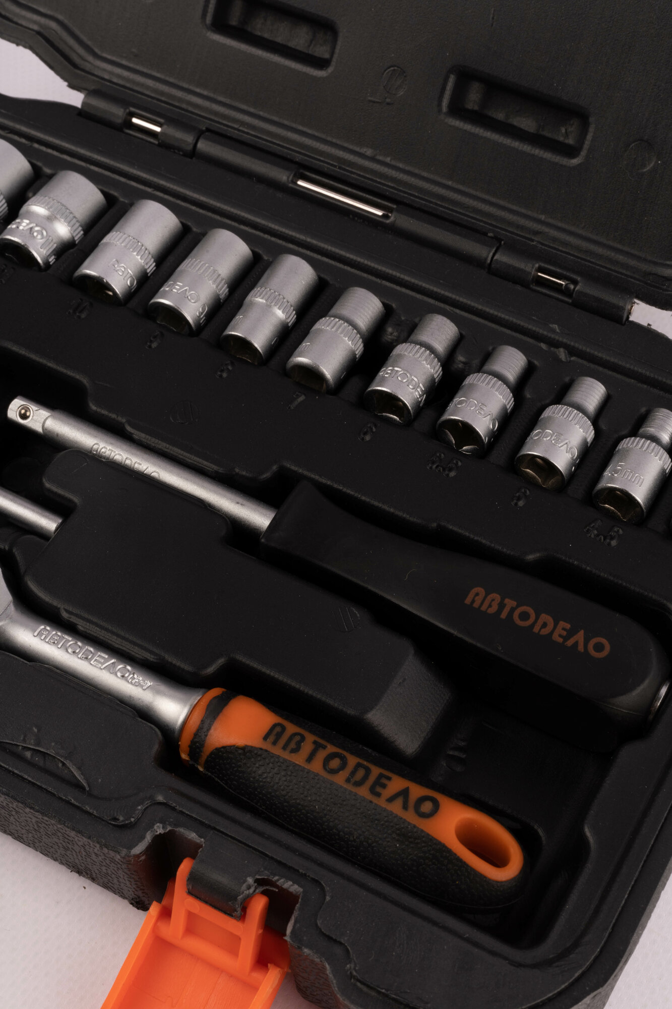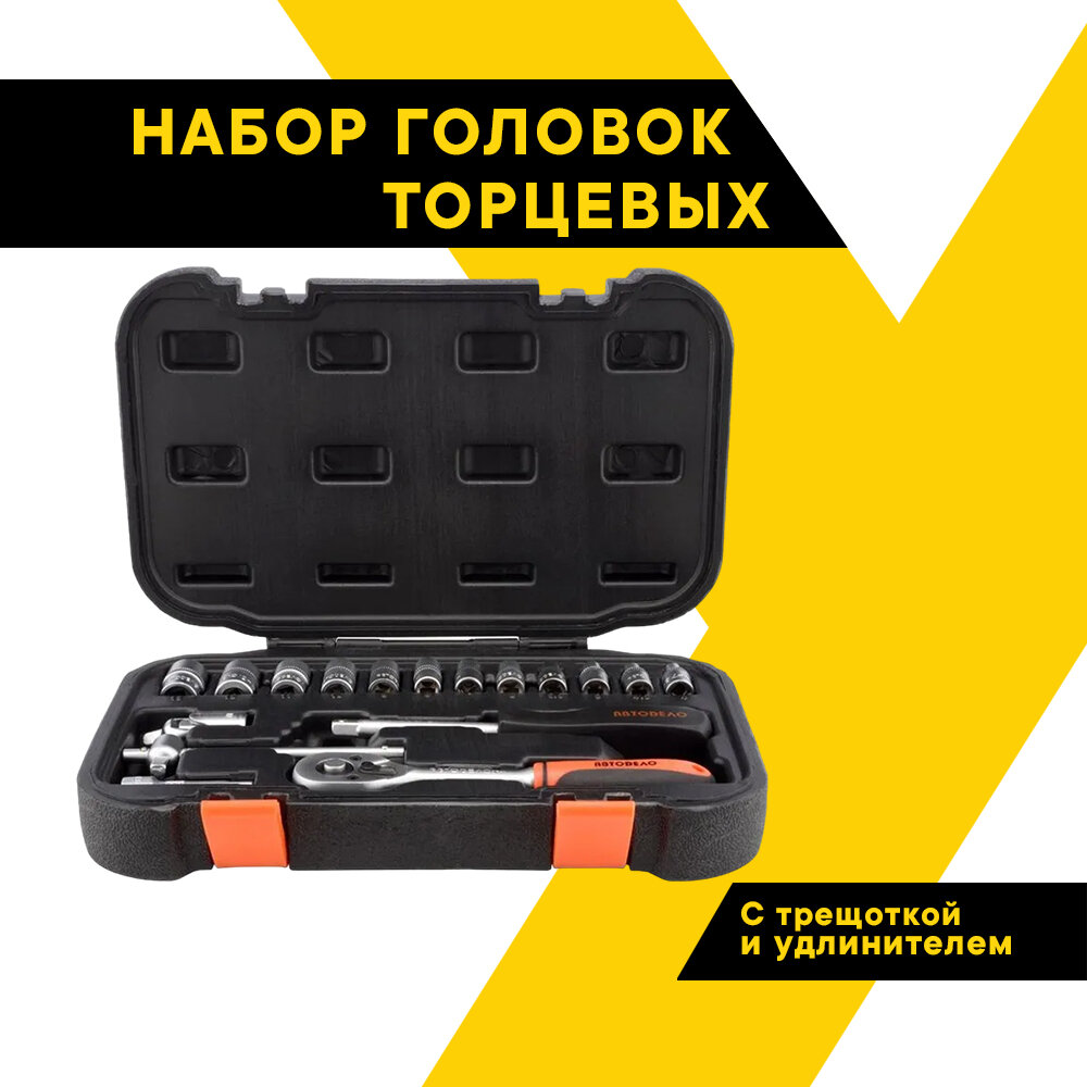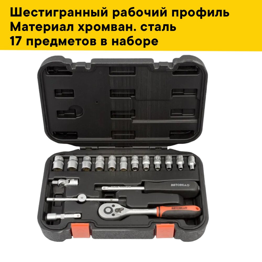 Набор головок (17 предметов) "АвтоDело" (1/4", с трещоткой и воротком, пласт. кейс)