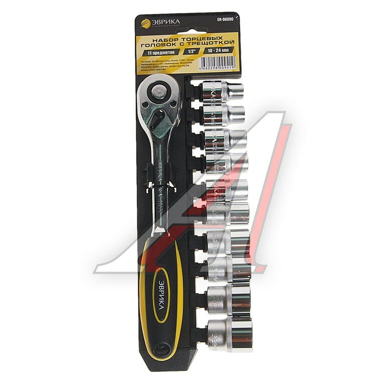 Набор головок торцевых 1/2" 10-24мм с трещоткой 11 предметов эврика ER-96090