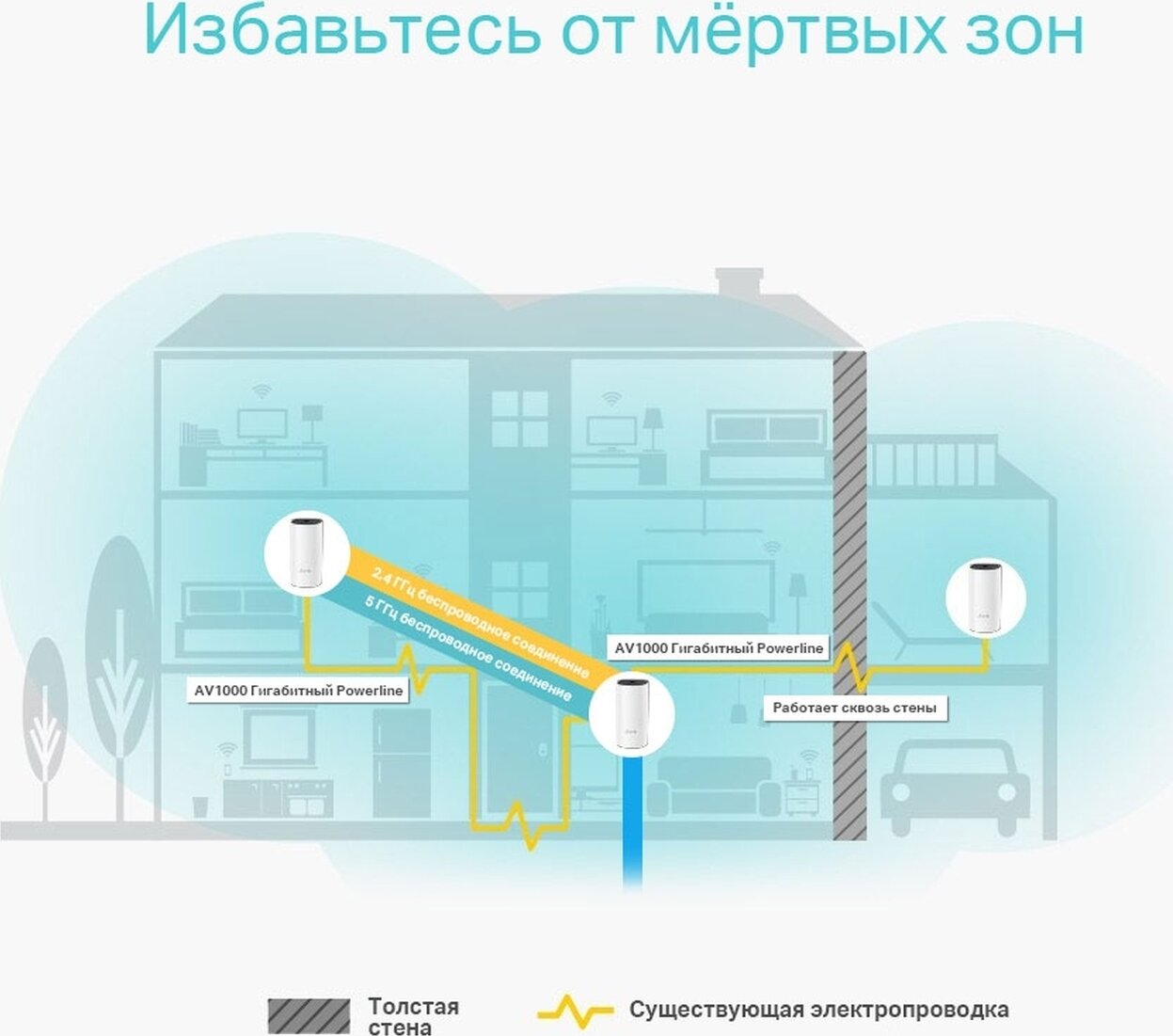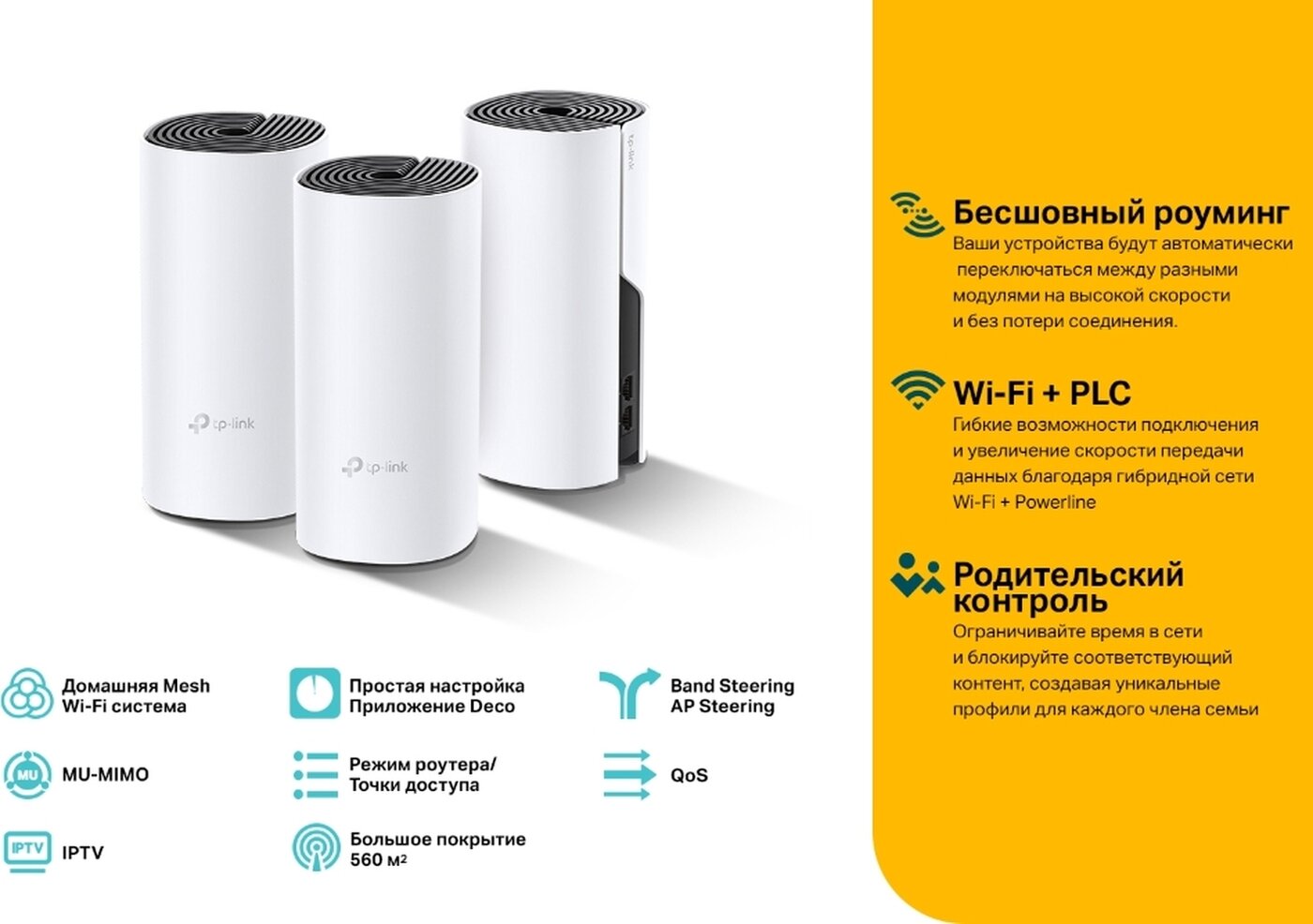 TP-Link DECO P9(3-PACK) AC1200 + AV1000 Домашняя гибридная Mesh Wi-Fi система