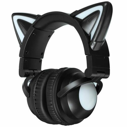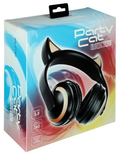 Наушники Qumo Party Cat (ВТ 0024), черный + "ушки" с подсветкой, накладная, Bluetooth 4.2