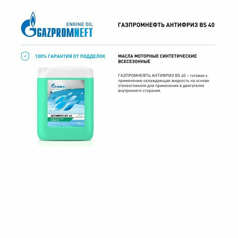 Антифриз bs 40 gazpromneft готовый (зеленый) 10кг, gazpromneft, 2422210105
