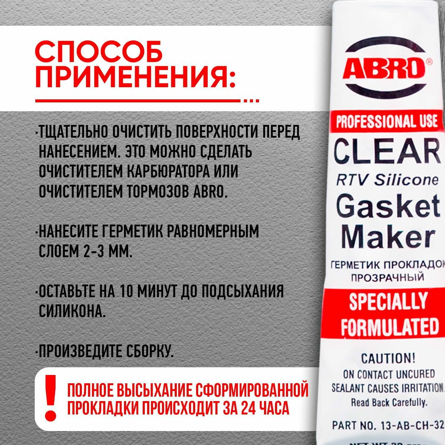 ABRO Герметик прокладок ABRO MASTERS, силиконовый, прозрачный, 32 г 13-AB-CH-32