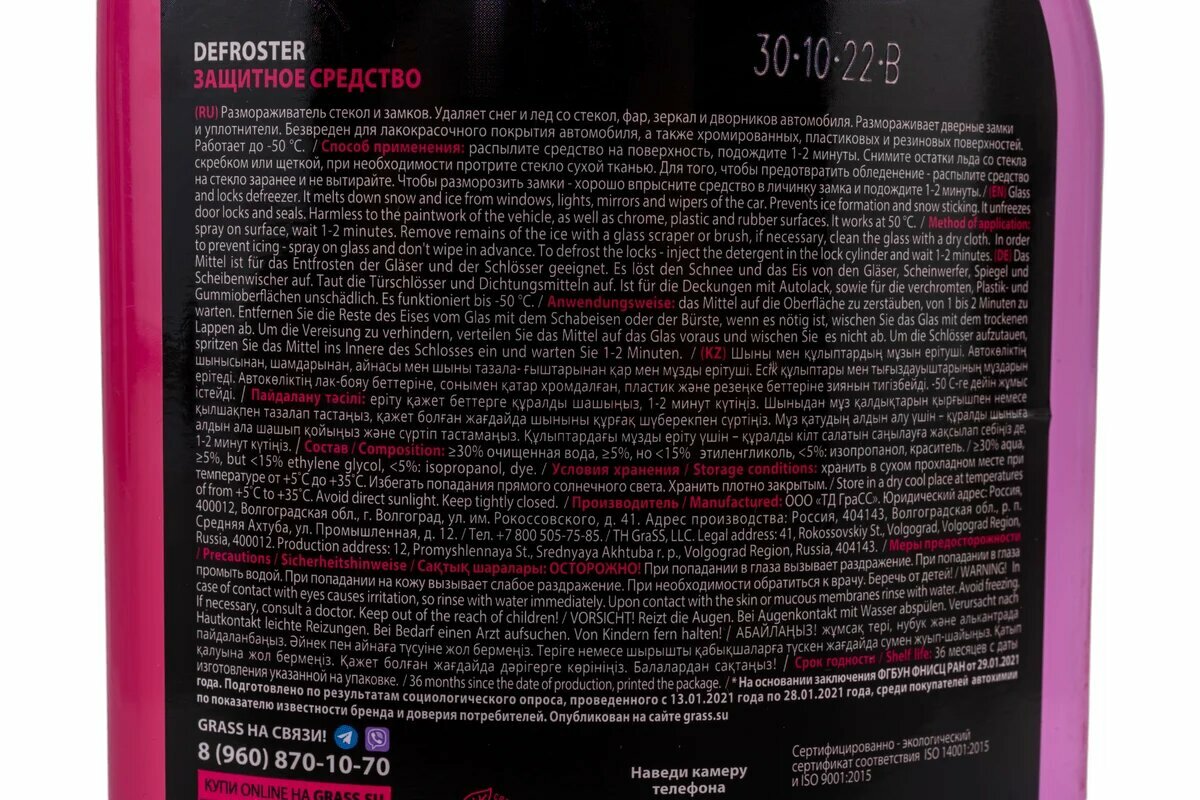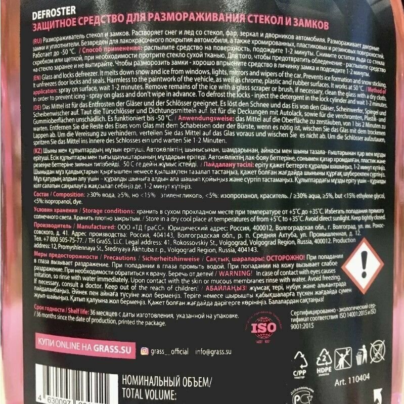 Размораживатель Стекол Растворяет Лед Стекол Фар Зеркал Дворников Предотвращает Образование Наледи Размораживает Замки Безопасен Для Лкп Спрей GRASS 1