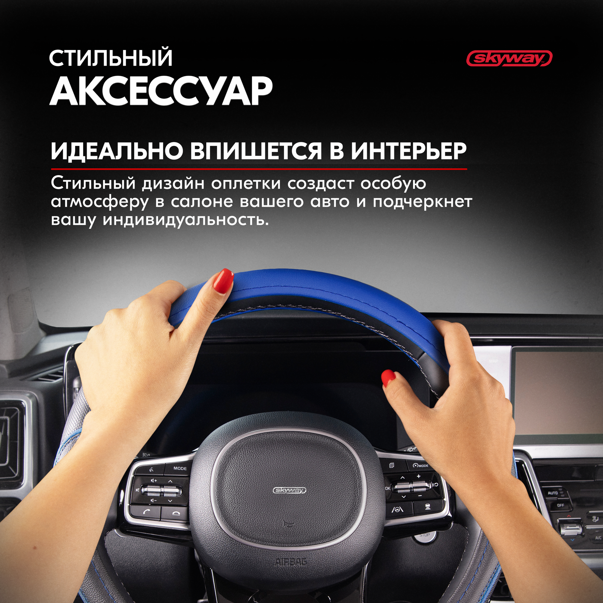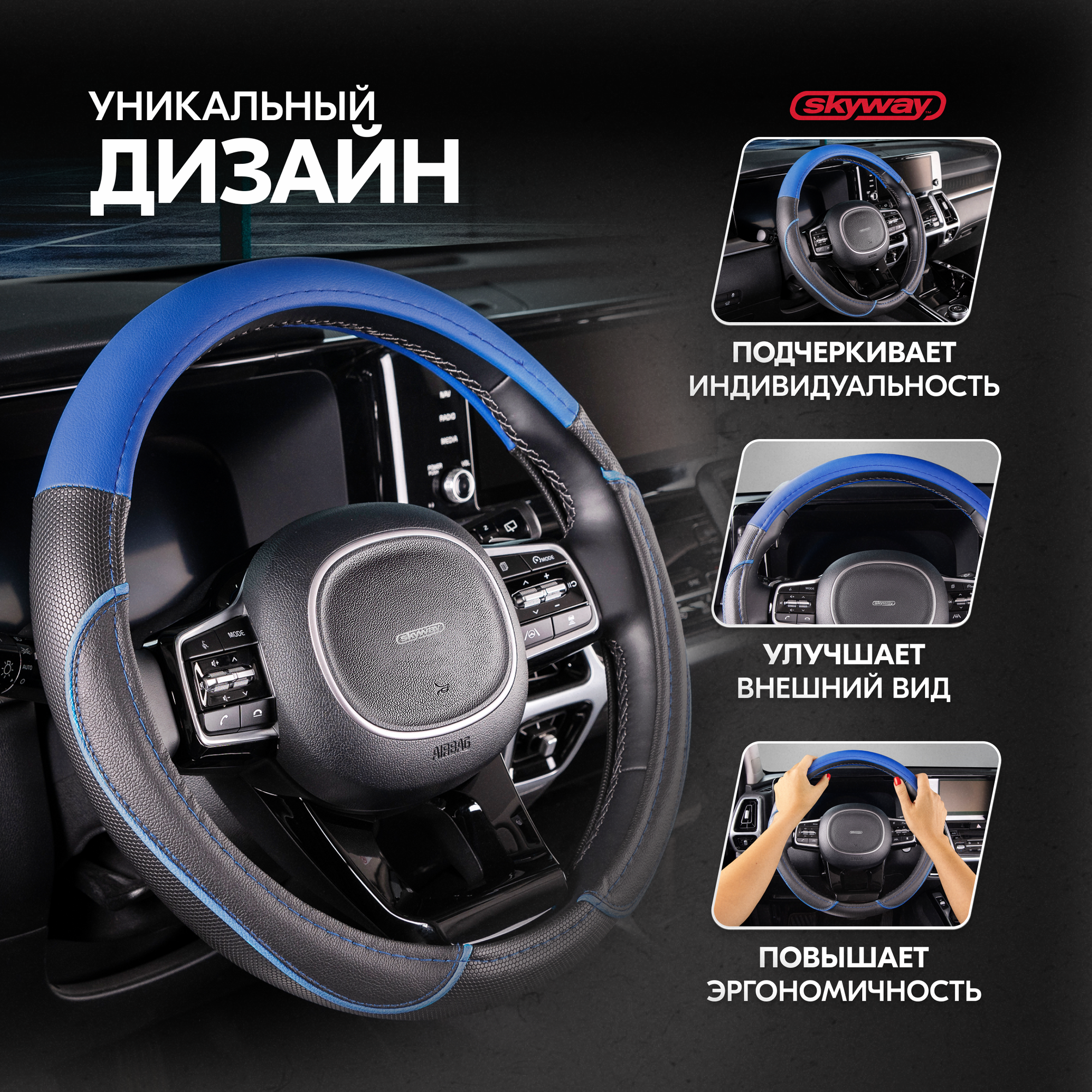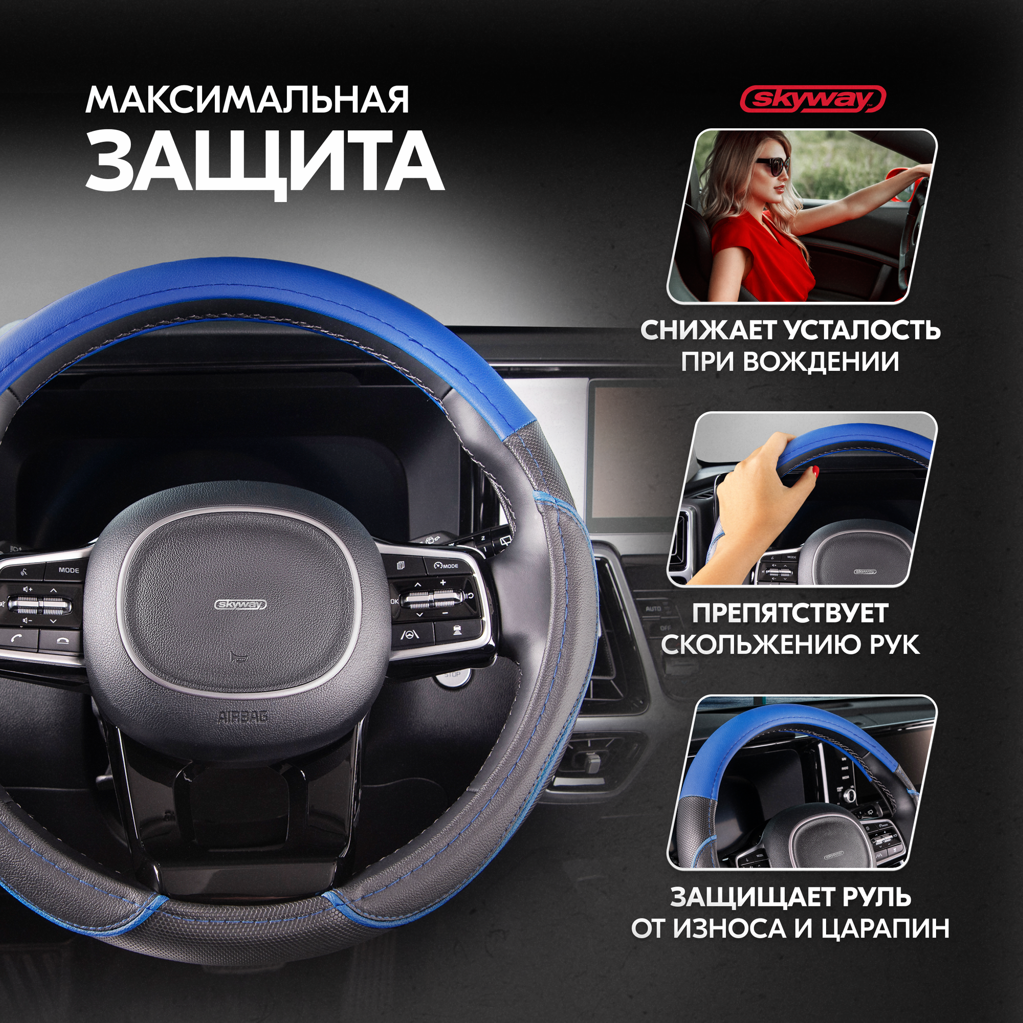 Оплетка руля SKYWAY Combo-4, экокожа, черно-синяя, размер М, 37-38-39см, S01102390