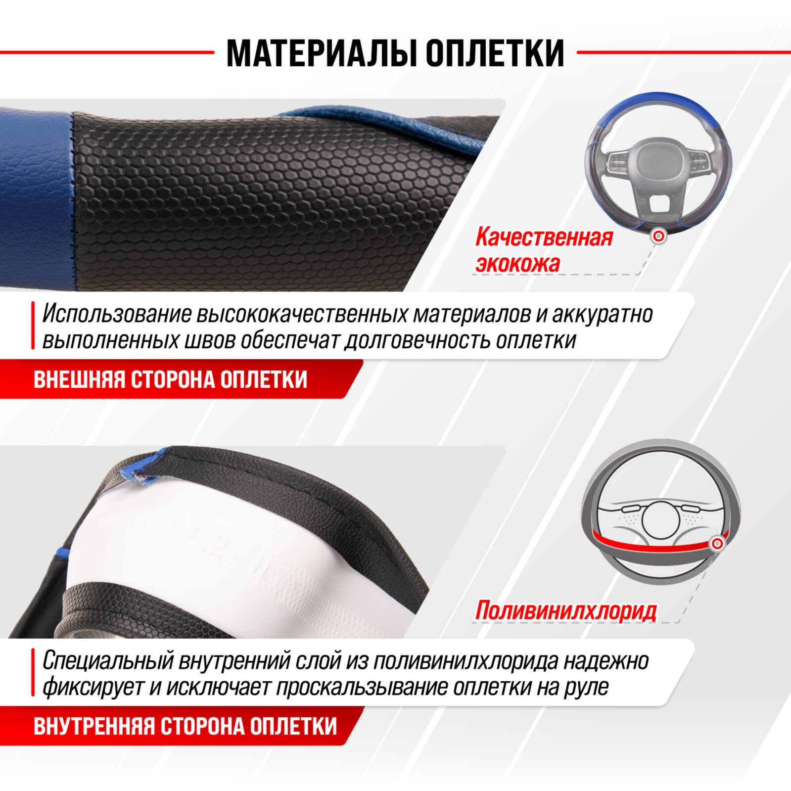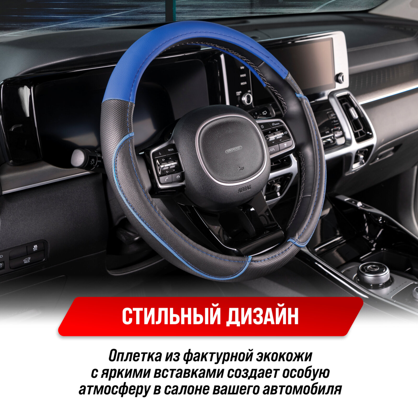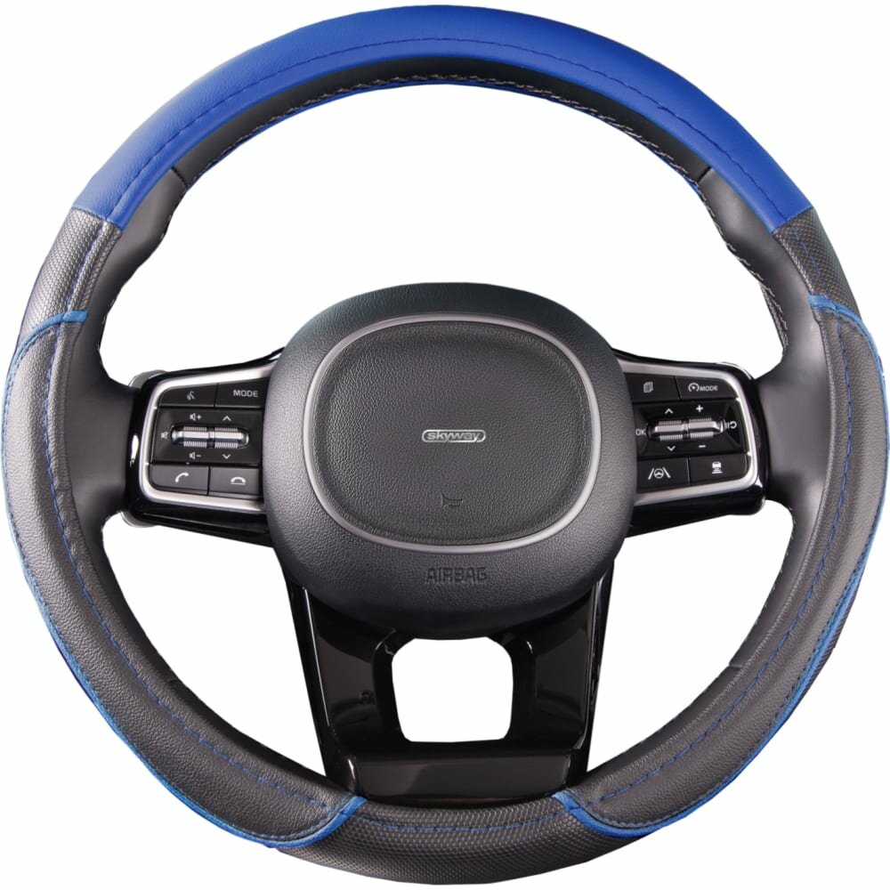 Оплетка руля SKYWAY Combo-4, экокожа, черно-синяя, размер М, 37-38-39см, S01102390