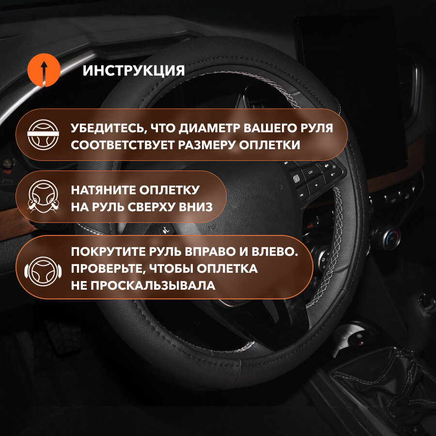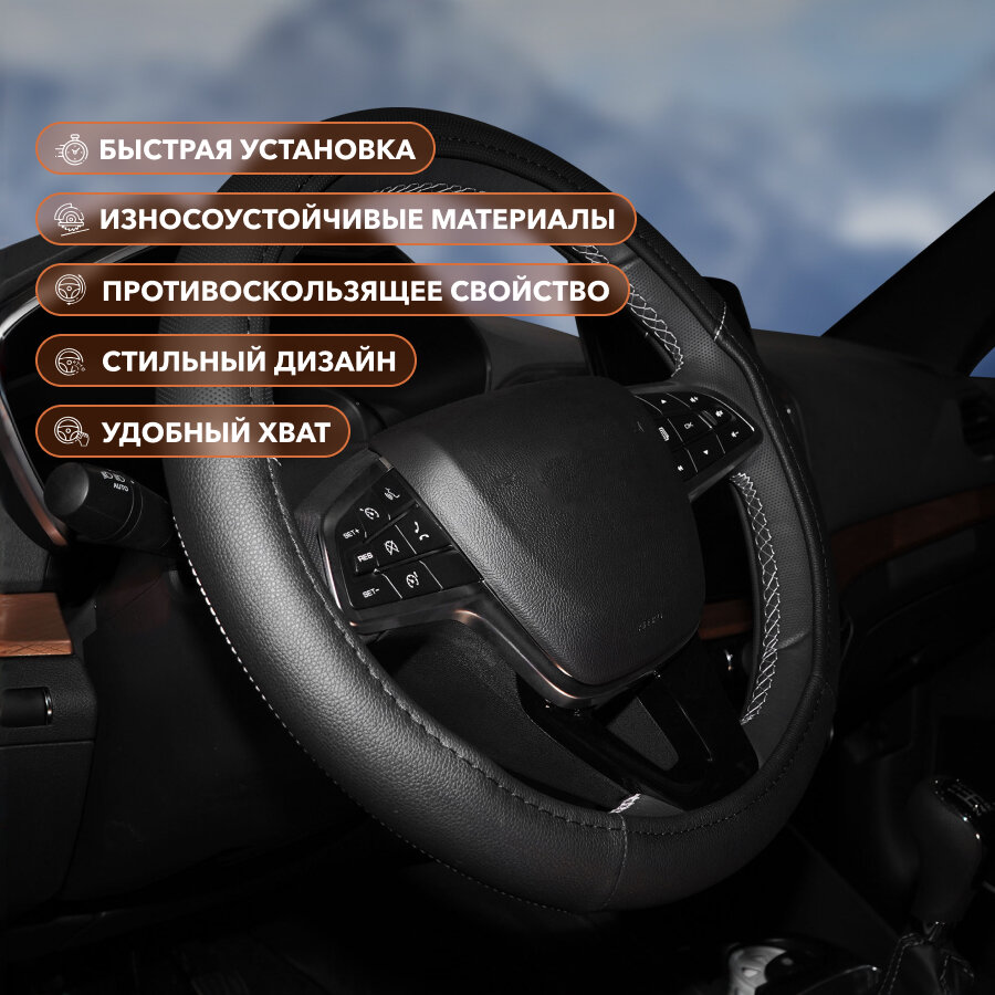 Оплетка на руль, искусственная кожа с перфорацией, черная, 38 см / M
