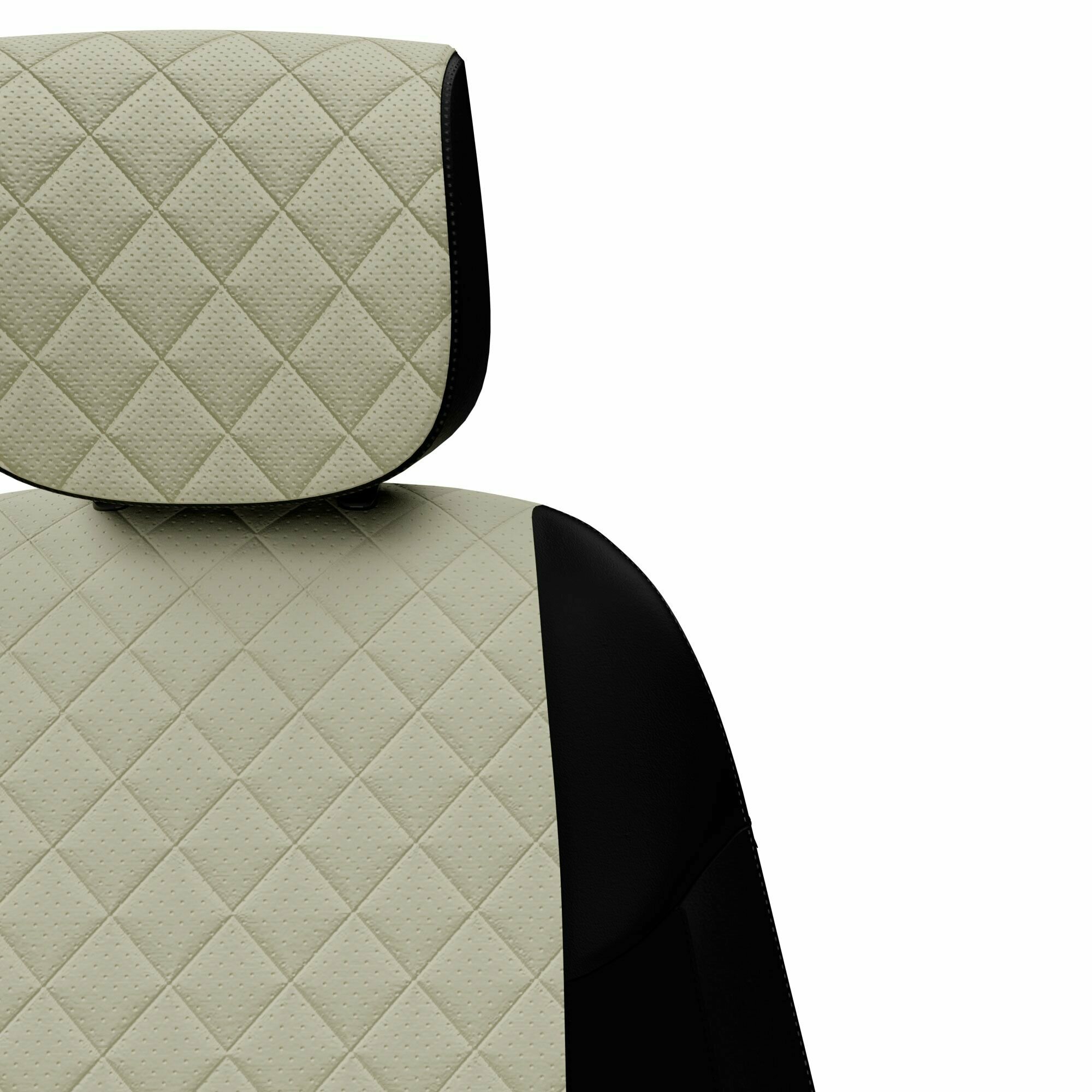 Комплект чехлов на сиденья SsangYong Rexton II с 07-12г. / UAZ Patriot с 07-14г. (Экокожа ромб, Черный + Темно-бежевый)