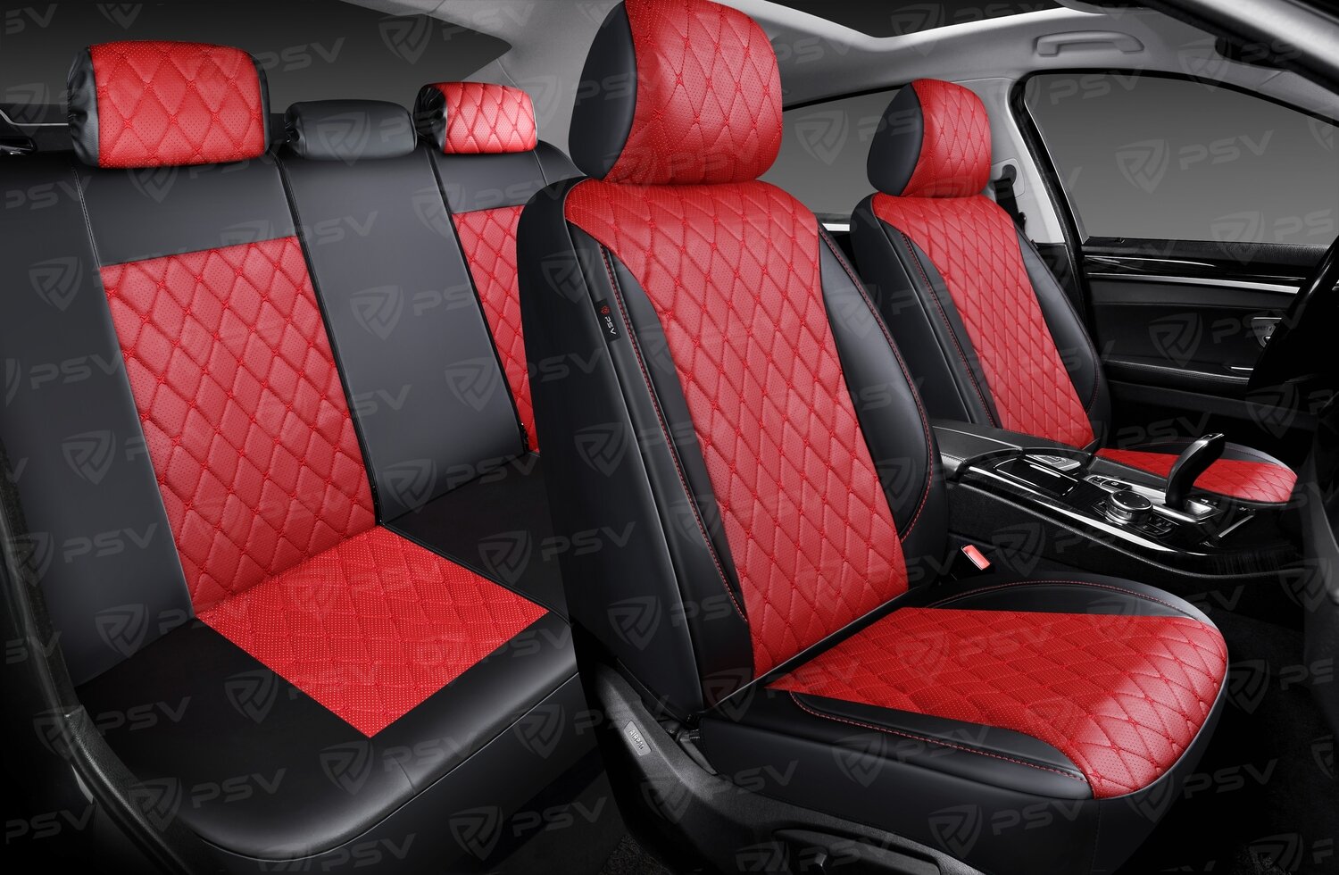 Чехлы в машину универсальные PSV Graf Next (Черный, ромб красный, отстрочка красная), ромб + экокожа, 136301