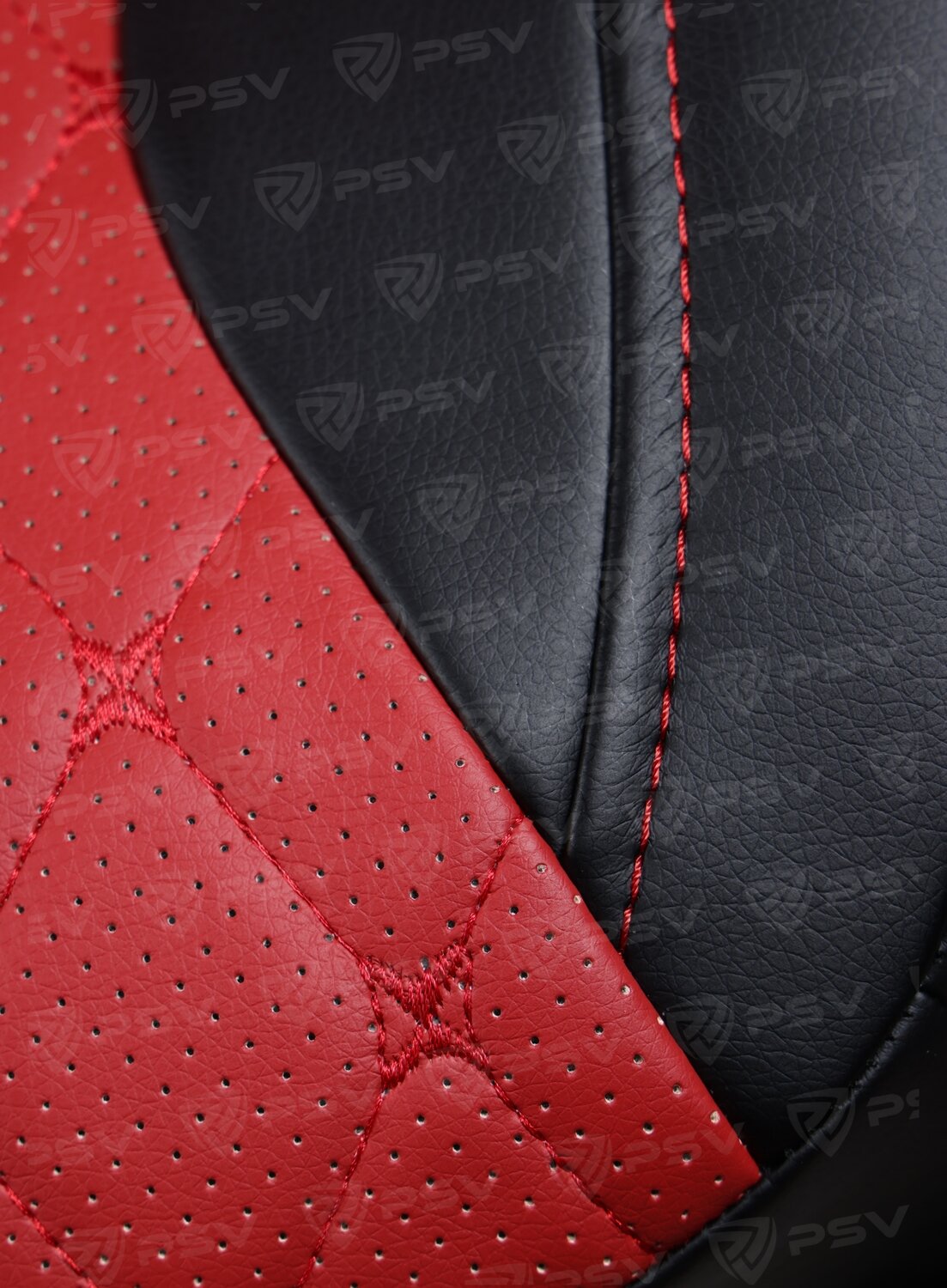 Чехлы PSV Lotos Next 2 FRONT (Черный/отстрочка красная), ромб + экокожа, 135896