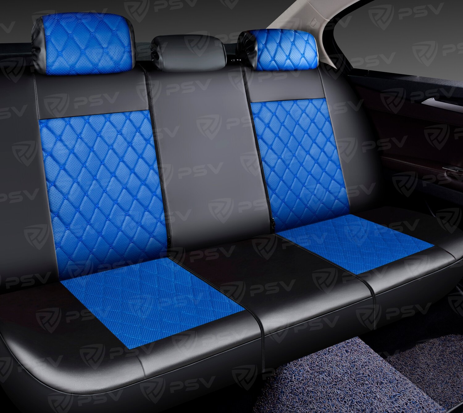 Чехлы в машину универсальные PSV Graf Next (Черный, ромб синий, отстрочка синяя), ромб + экокожа, 136302