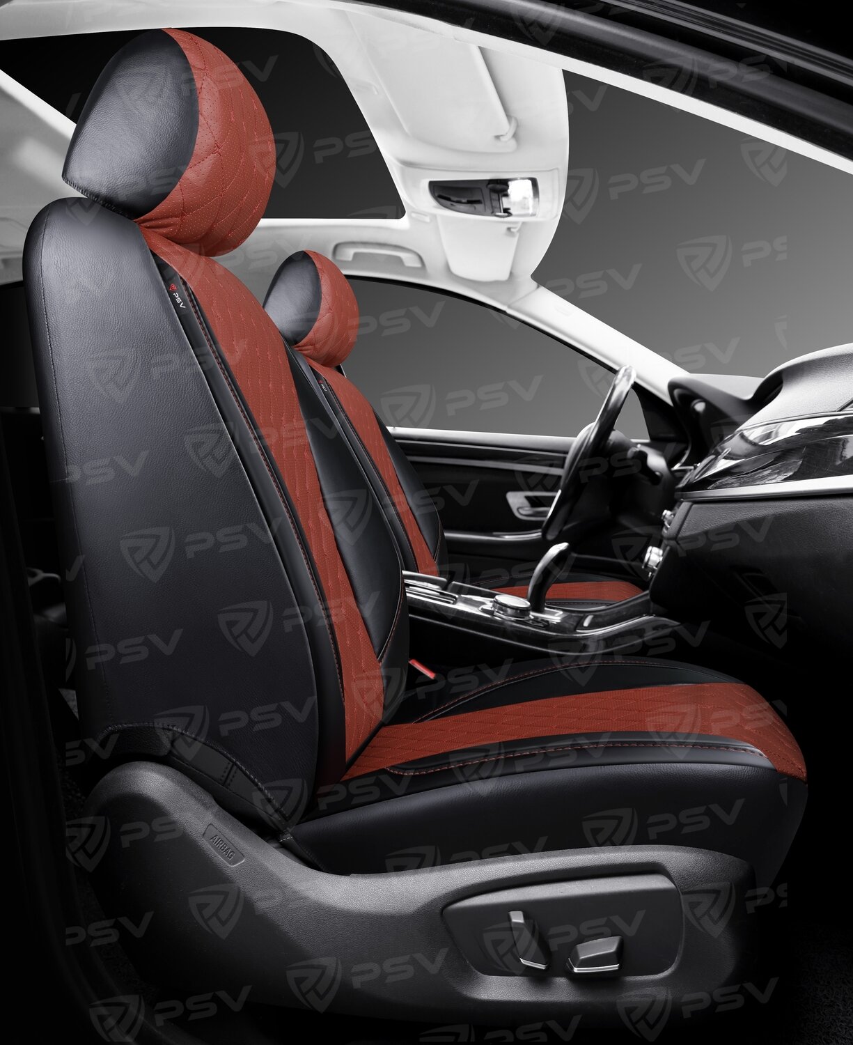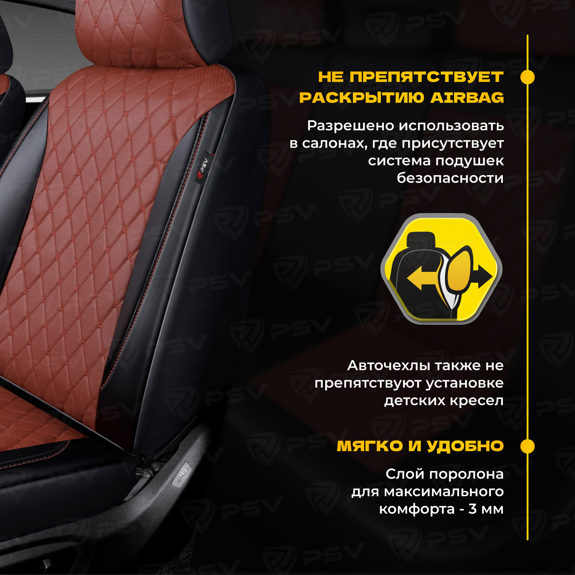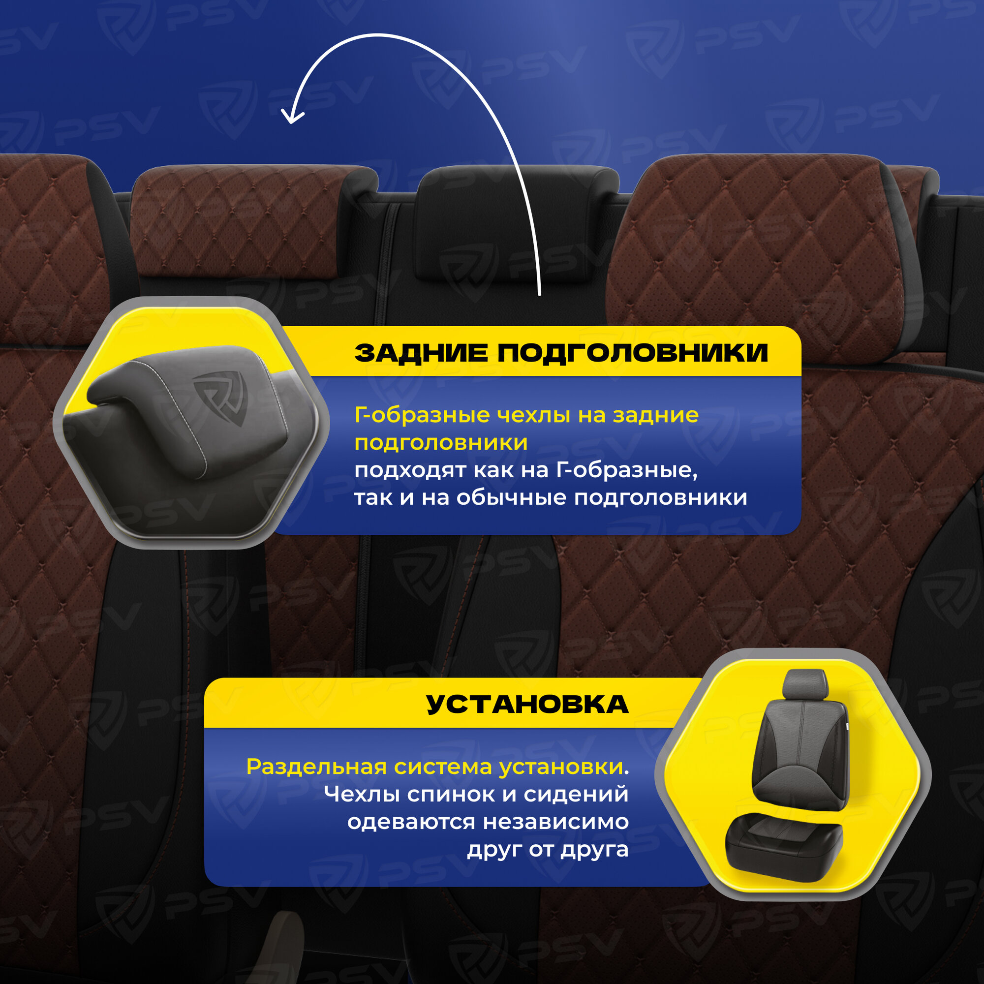 Чехлы PSV Graf Next (Черный, ромб коричневый, отстрочка коричневая), ромб + экокожа, 136901