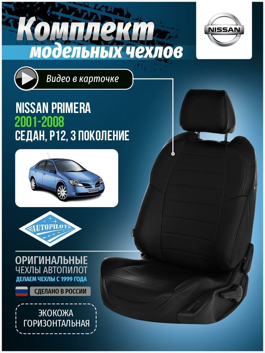 Чехлы для Nissan Primera 3 P12 2001-2008 Автопилот Черный Экокожа ni-pr-p12-chch-e