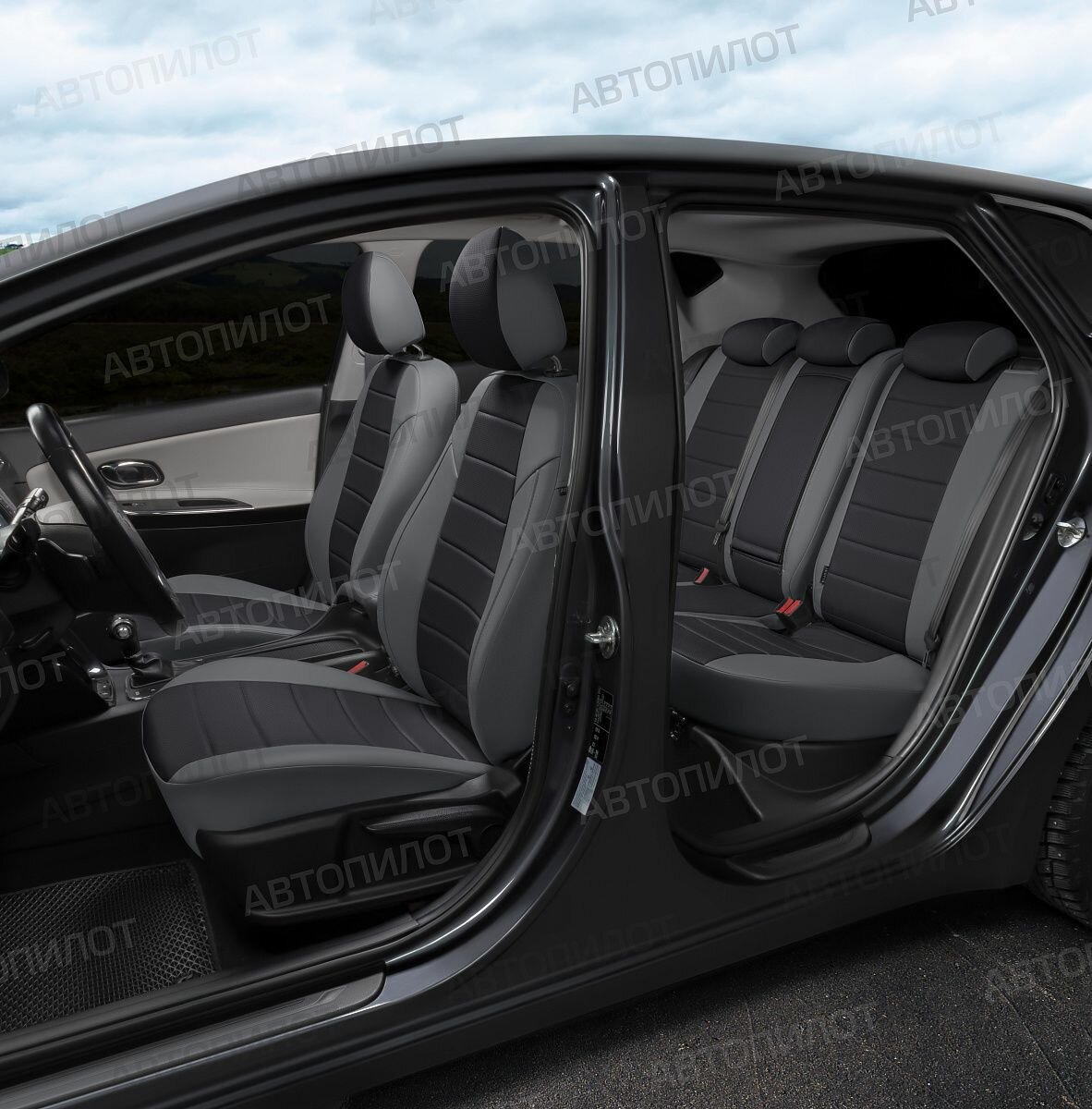 Купить Комплект чехлов Автопилот Экокожа Toyota Corolla Sd (Е160, Е170, Е180) с 13-18г. Серый + Черный