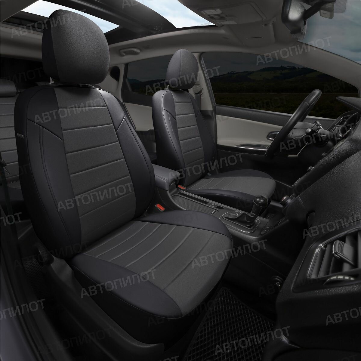 Комплект чехлов Автопилот Экокожа Toyota Corolla Sd (Е160, Е170, Е180) с 13-18г. Серый + Черный
