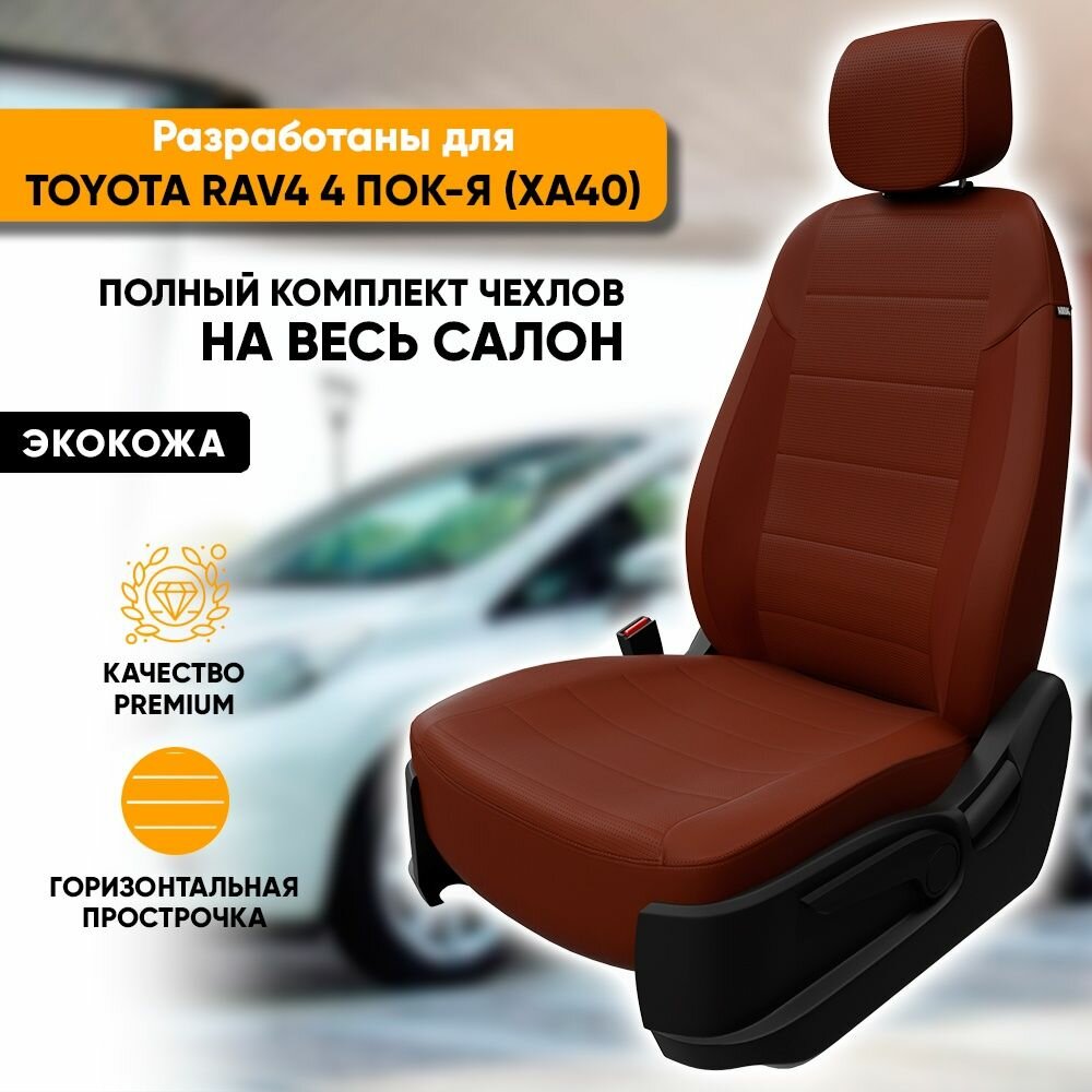 Авточехлы на Toyota RAV4 IV (CA40) "Классика" экокожа, темно-коричневый