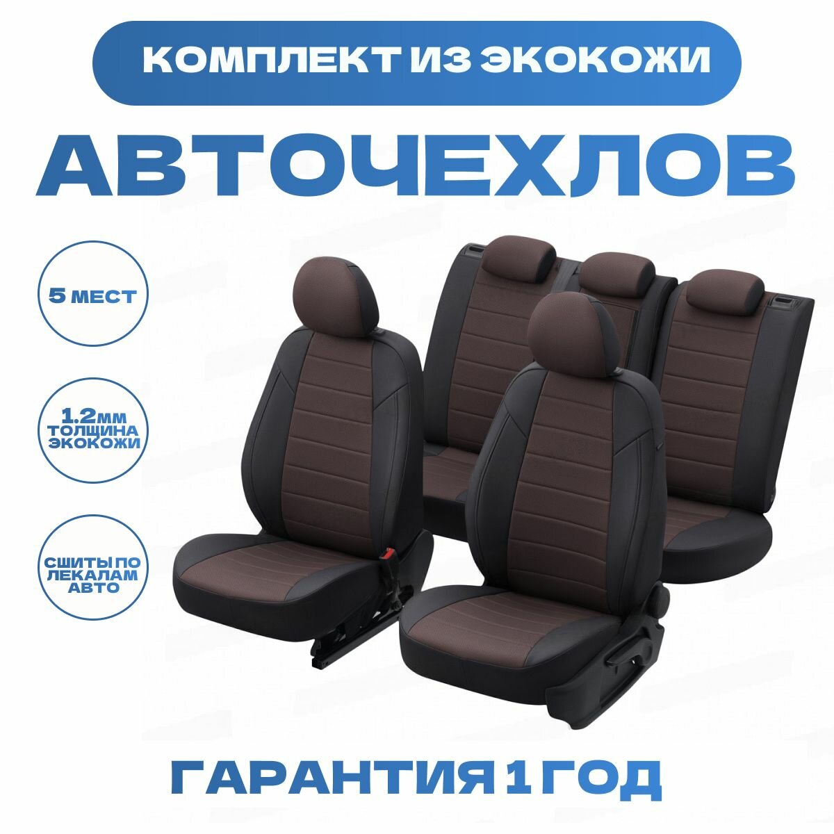 Модельные авточехлы АВТОПИЛОТ для Toyota Rav-4 (2012-2019гг) экокожа, черно-темнокоричневые