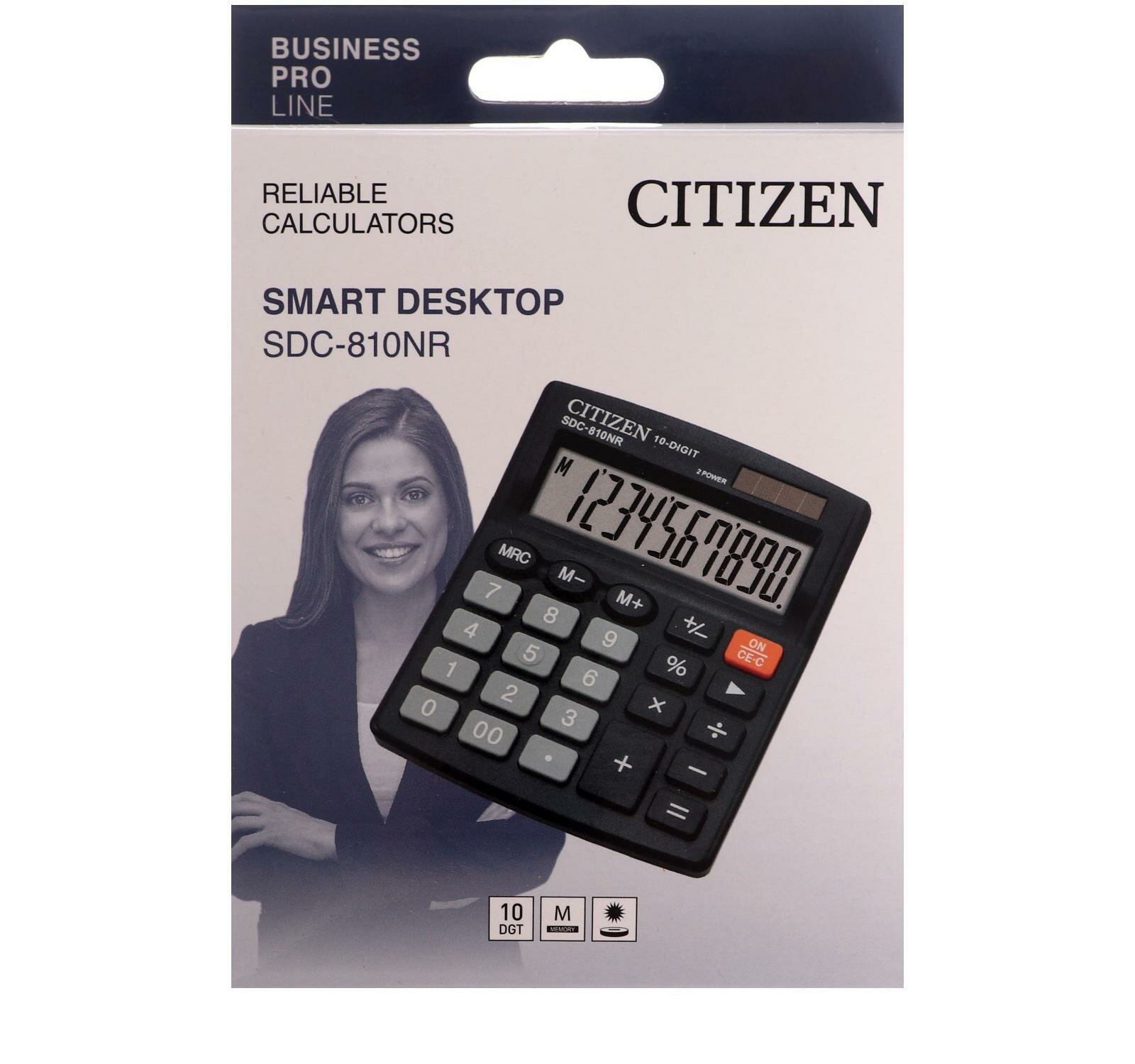 Калькулятор настольный 10-разрядный, Citizen Business Line SDC-810NR, двойное питание, 102 х 124 х 25 мм, черный./В упаковке шт: 1