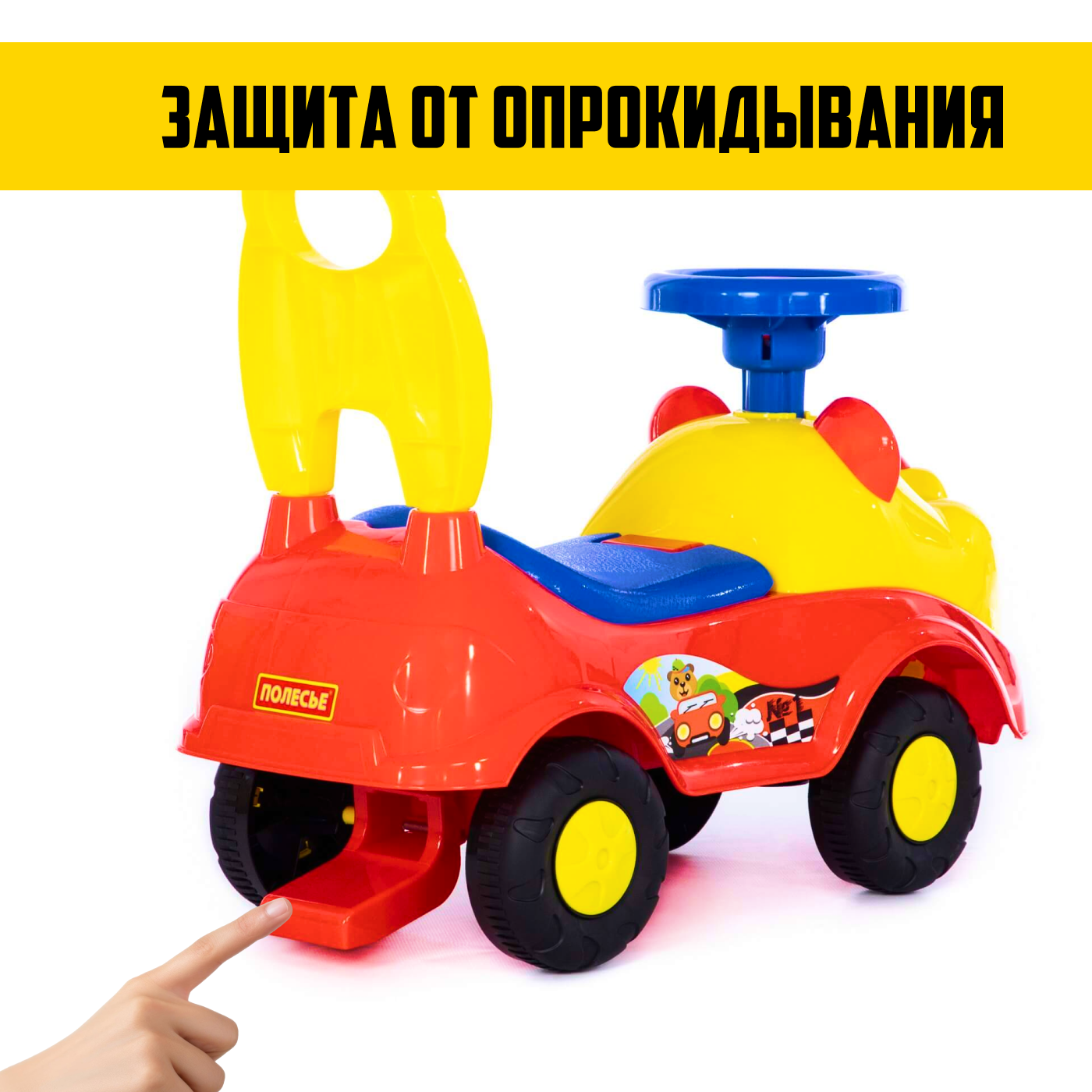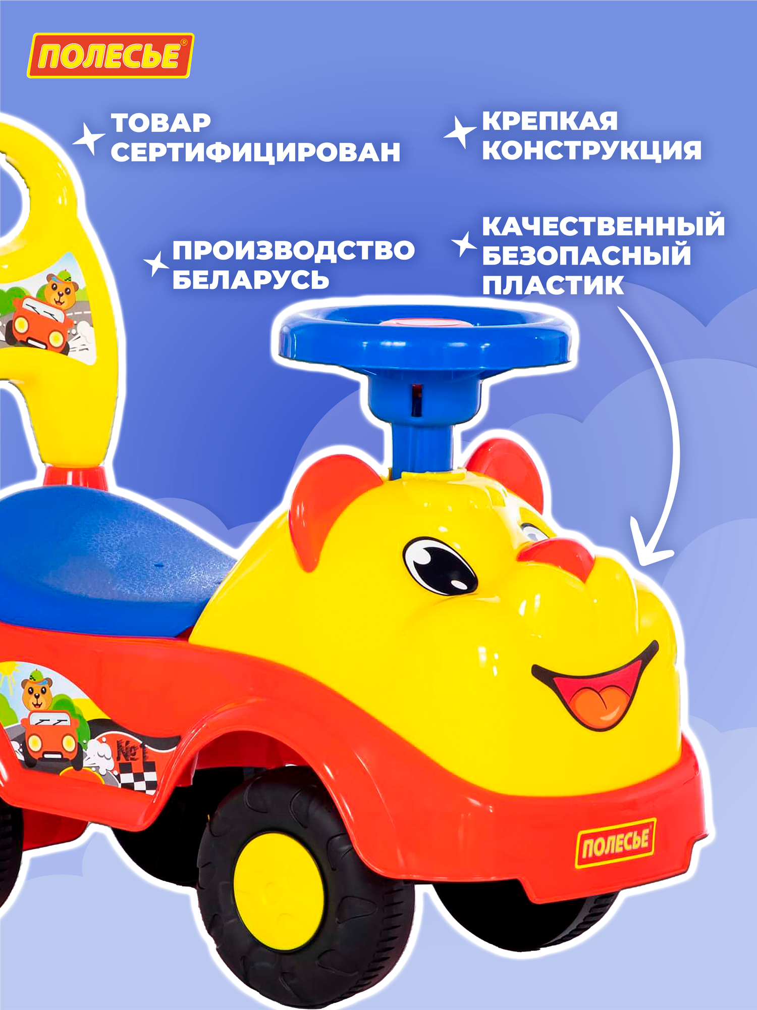 Купить Автомобиль-каталка Полесье Мишка (77974), желтый/синий/красный