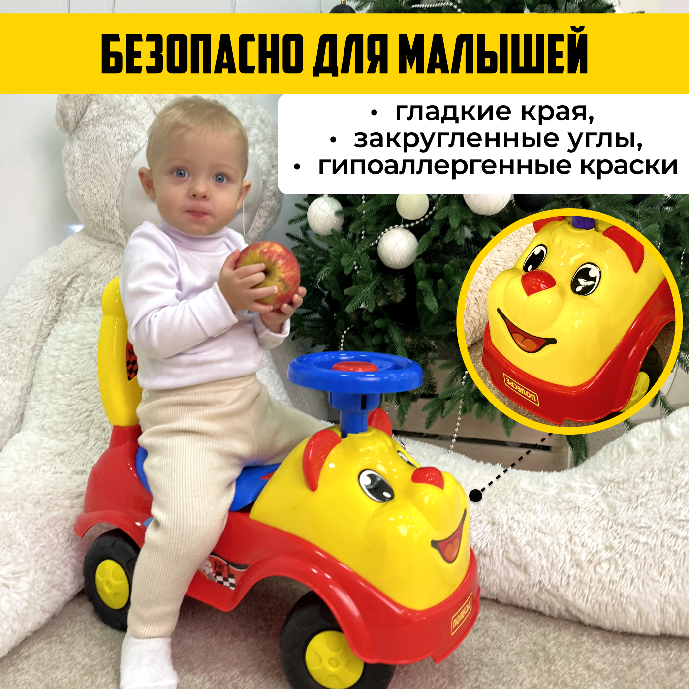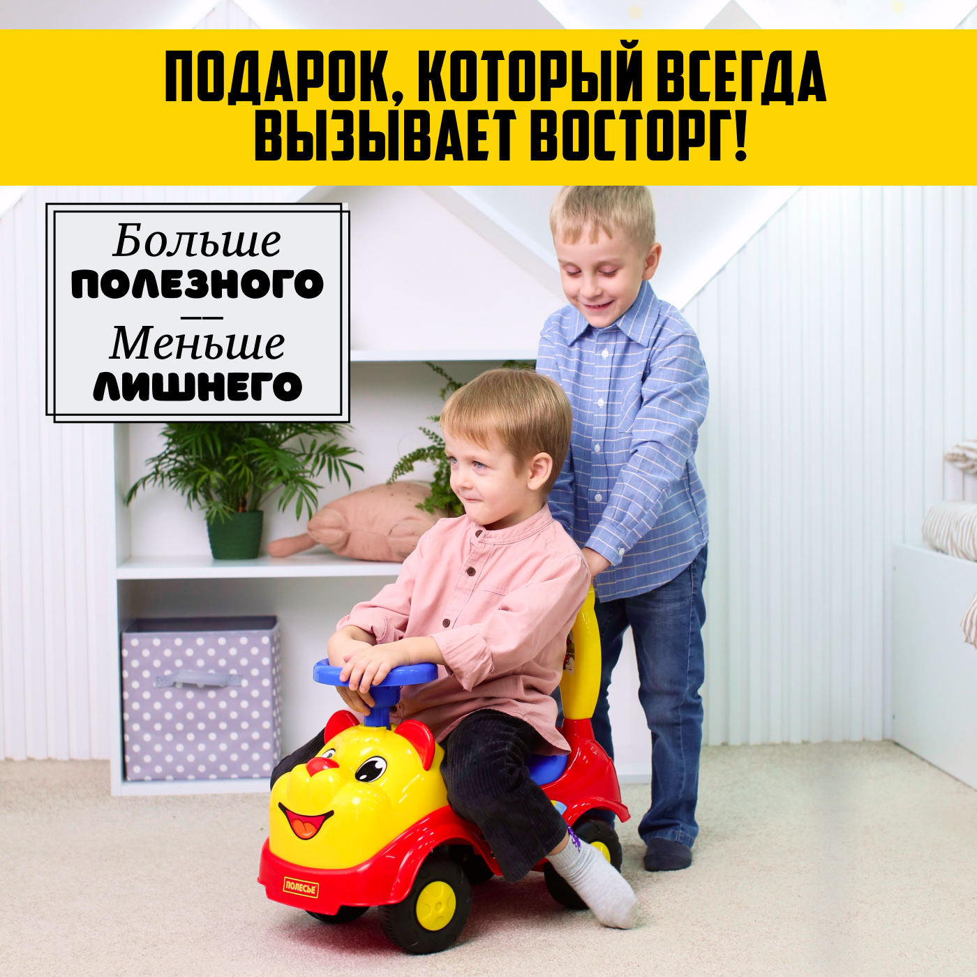 СохранитьАвтомобиль-каталка Полесье Мишка (77974), желтый/синий/красный интересное: