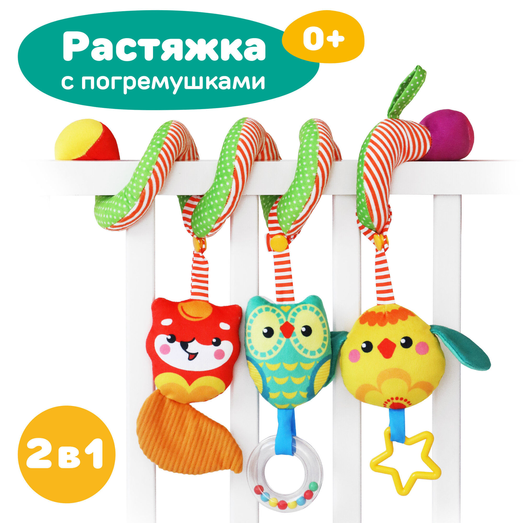 Растяжка спираль с погремушками на кроватку Жирафики