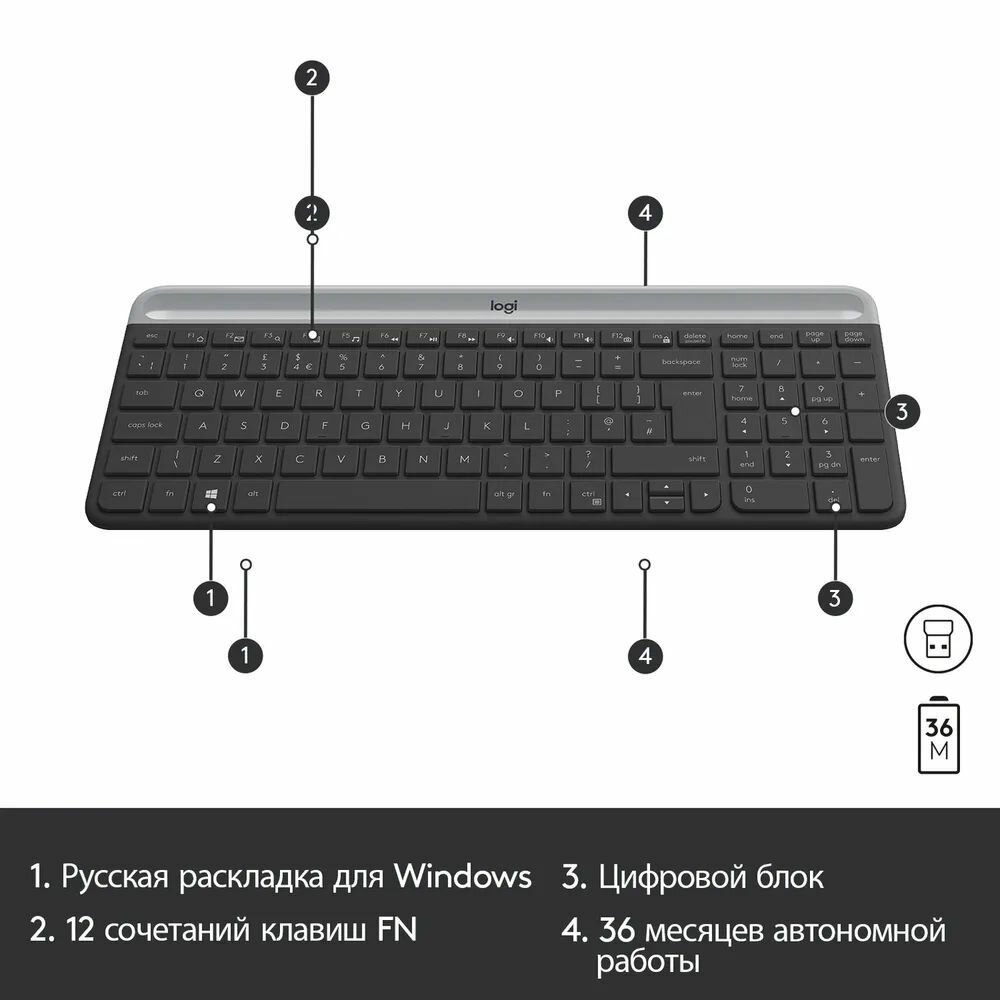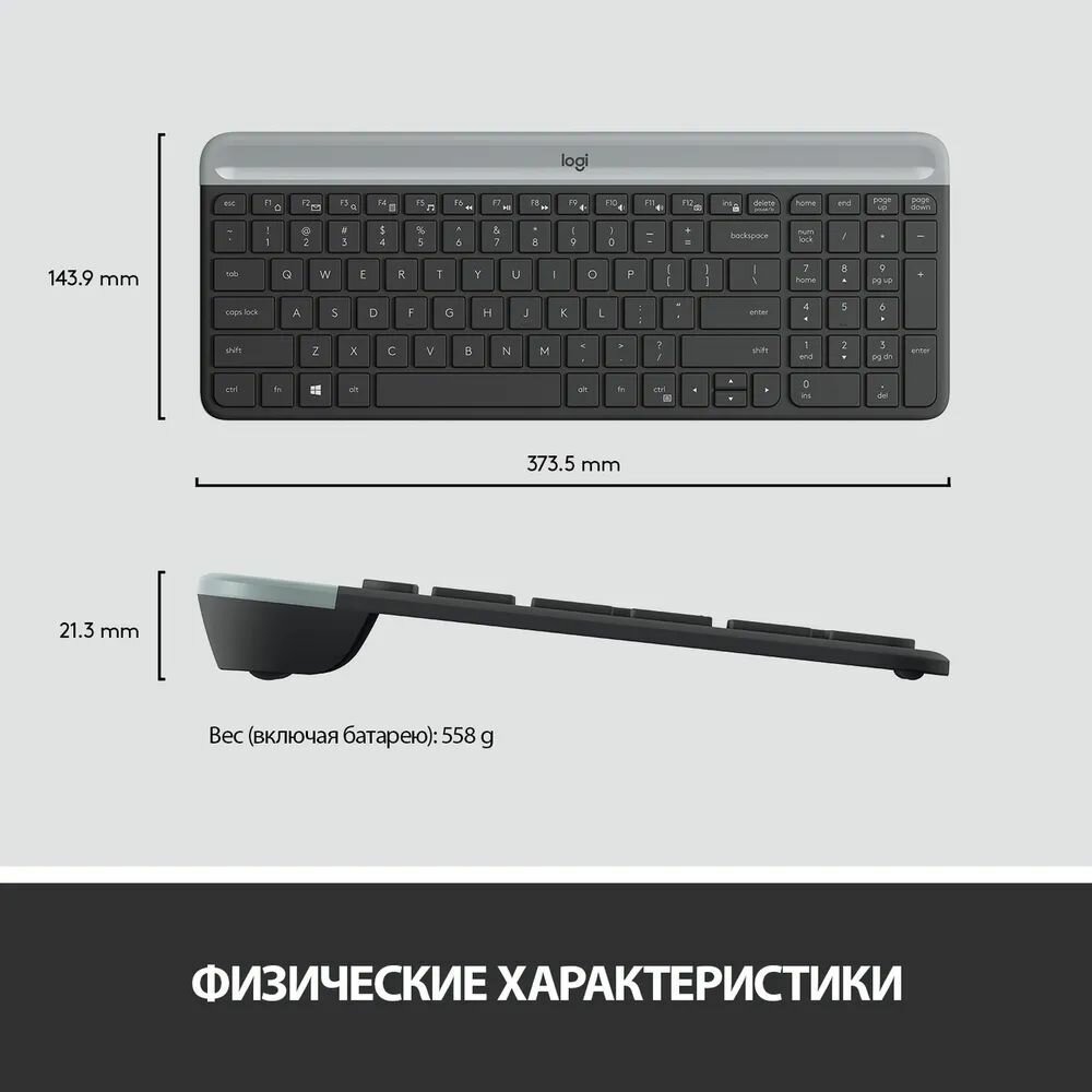 Комплект клавиатура + мышь Logitech MK470 Slim, графитовый, русская оригинальная раскладка.