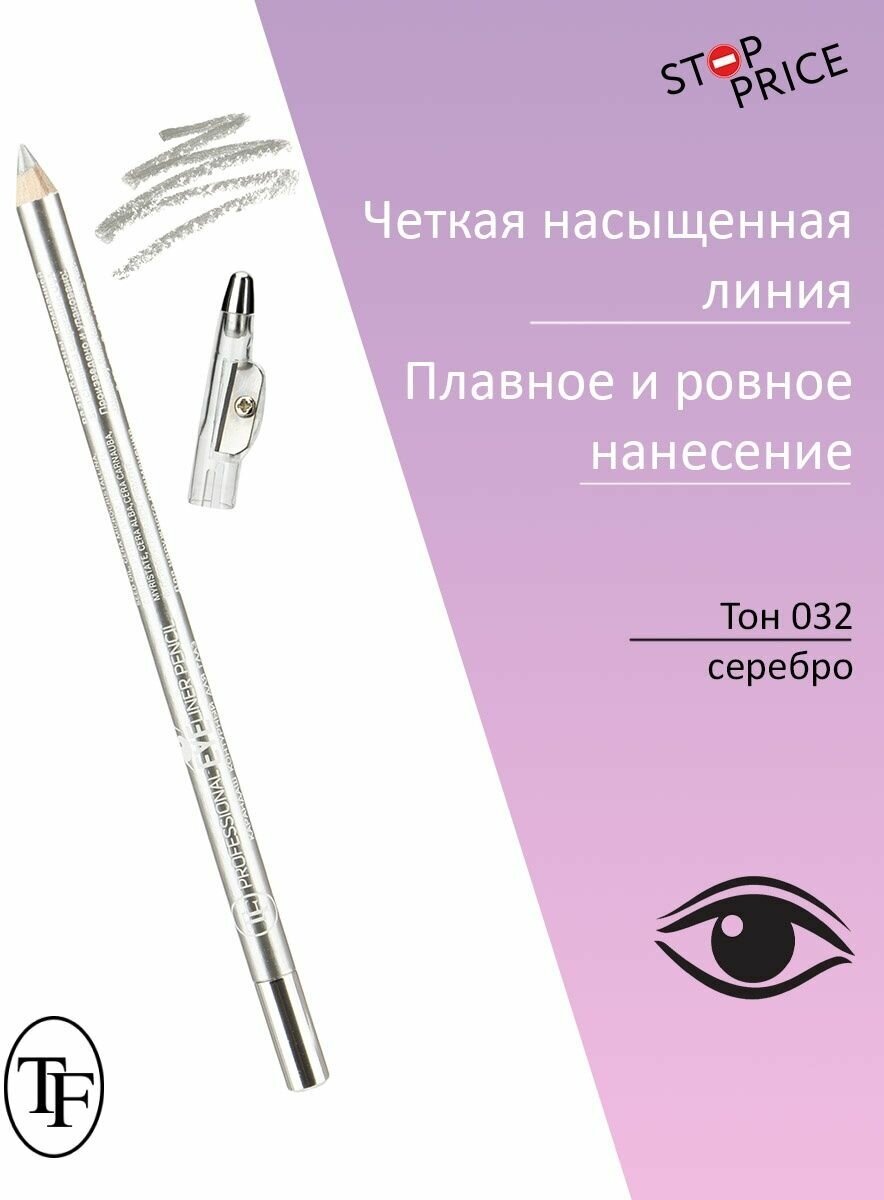 TF Cosmetics Карандаш для глаз с точилкой Professional Eyeliner, оттенок 32 серебро
