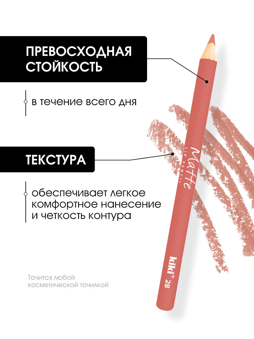 Карандаш для губ kiki MATTE тон 28 пыльная роза, водостойкий, матовый, насыщенный цвет, косметический карандаш для губ