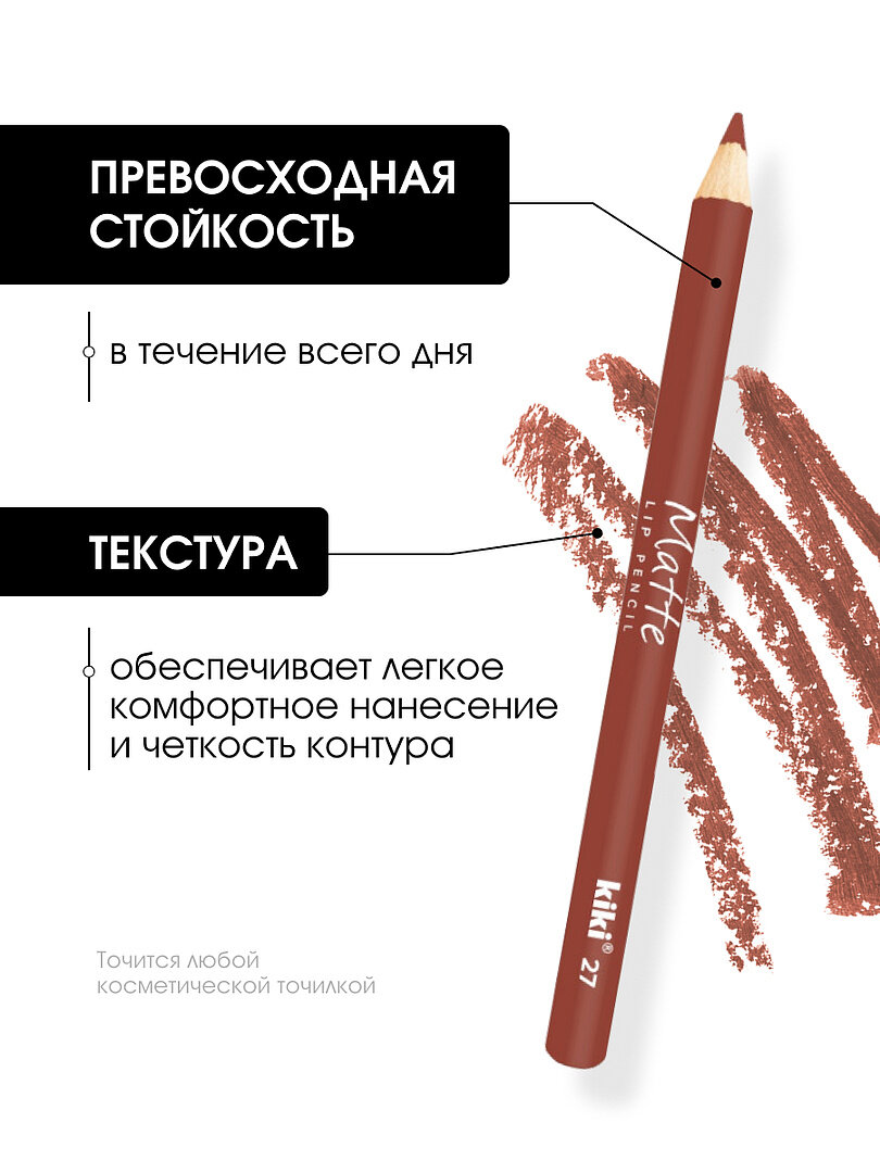 Карандаш для губ kiki MATTE, тон 27 бежевый, водостойкий косметический, лайнер, матовый насыщенный цвет, lip pencil