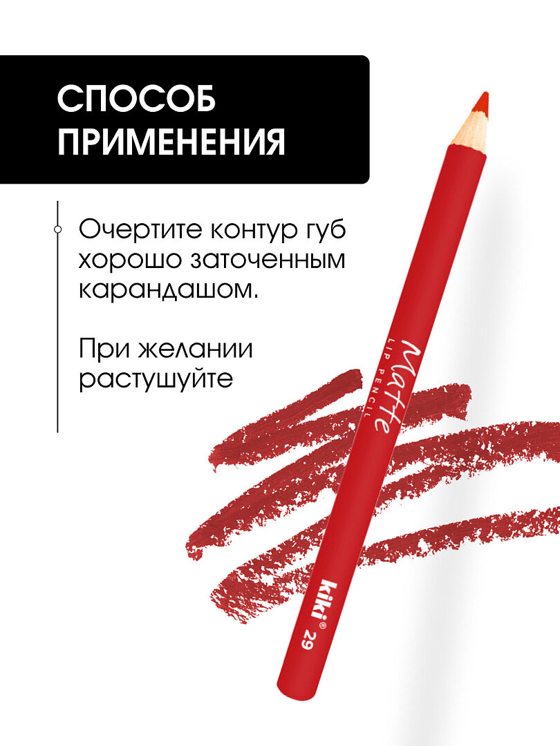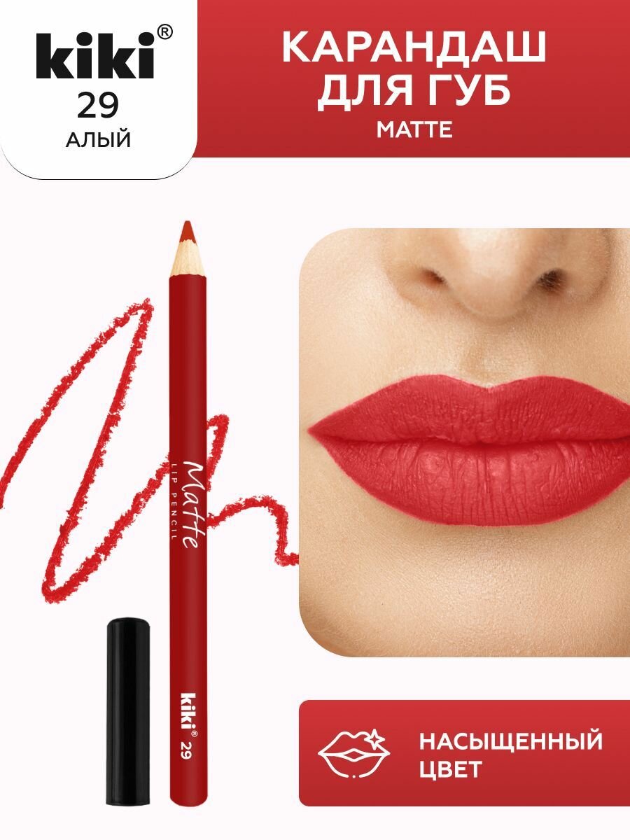Купить Карандаш для губ kiki MATTE, водостойкий, матовый, насыщенный цвет, тон 29, алый, косметический карандаш для губ