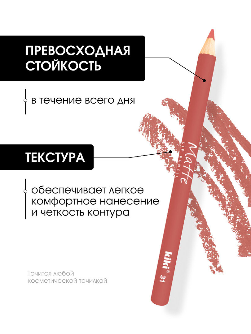 СохранитьКарандаш для губ Kiki матовый стойкий Matte, тон 31 интересное: