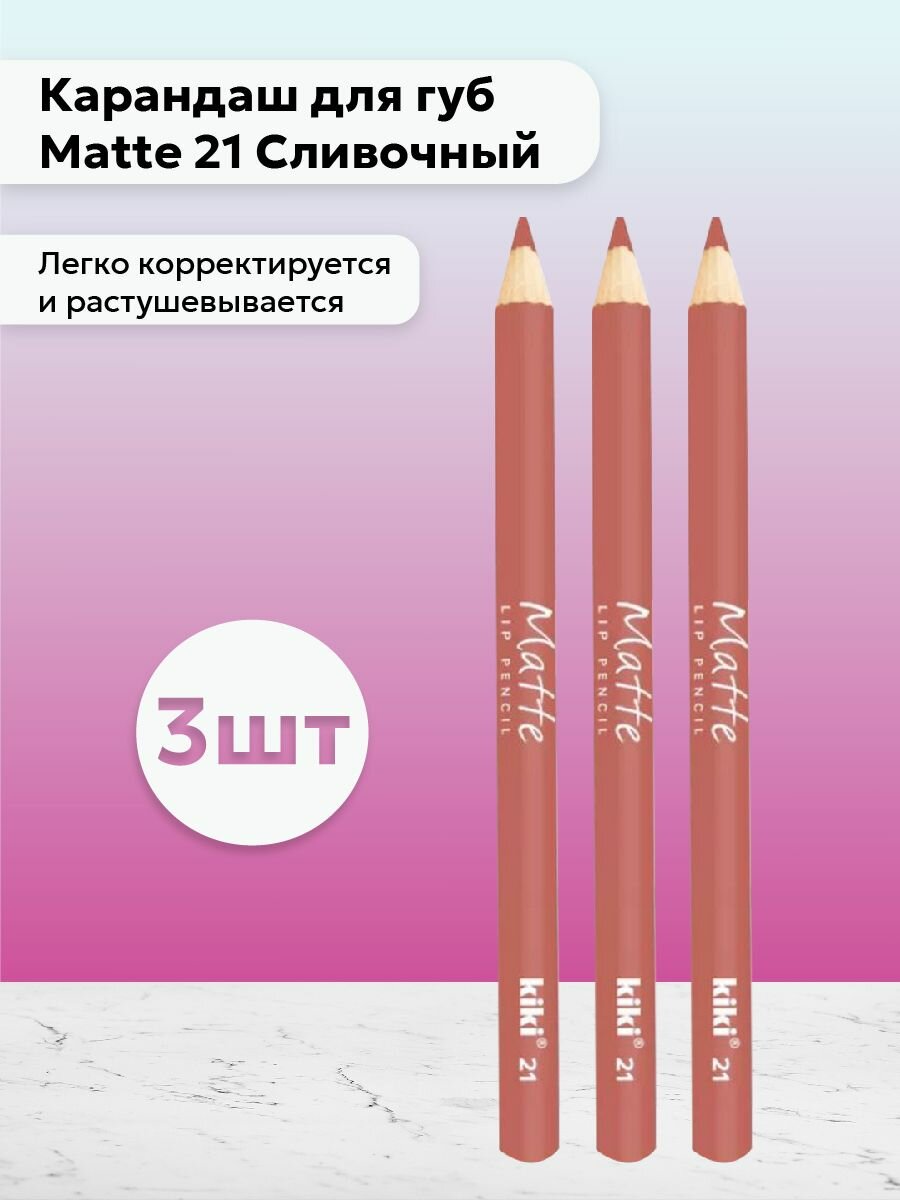 Карандаш для губ kiki MATTE, тон 21 сливочный, водостойкий косметический, лайнер, матовый насыщенный цвет, кики lip pencil