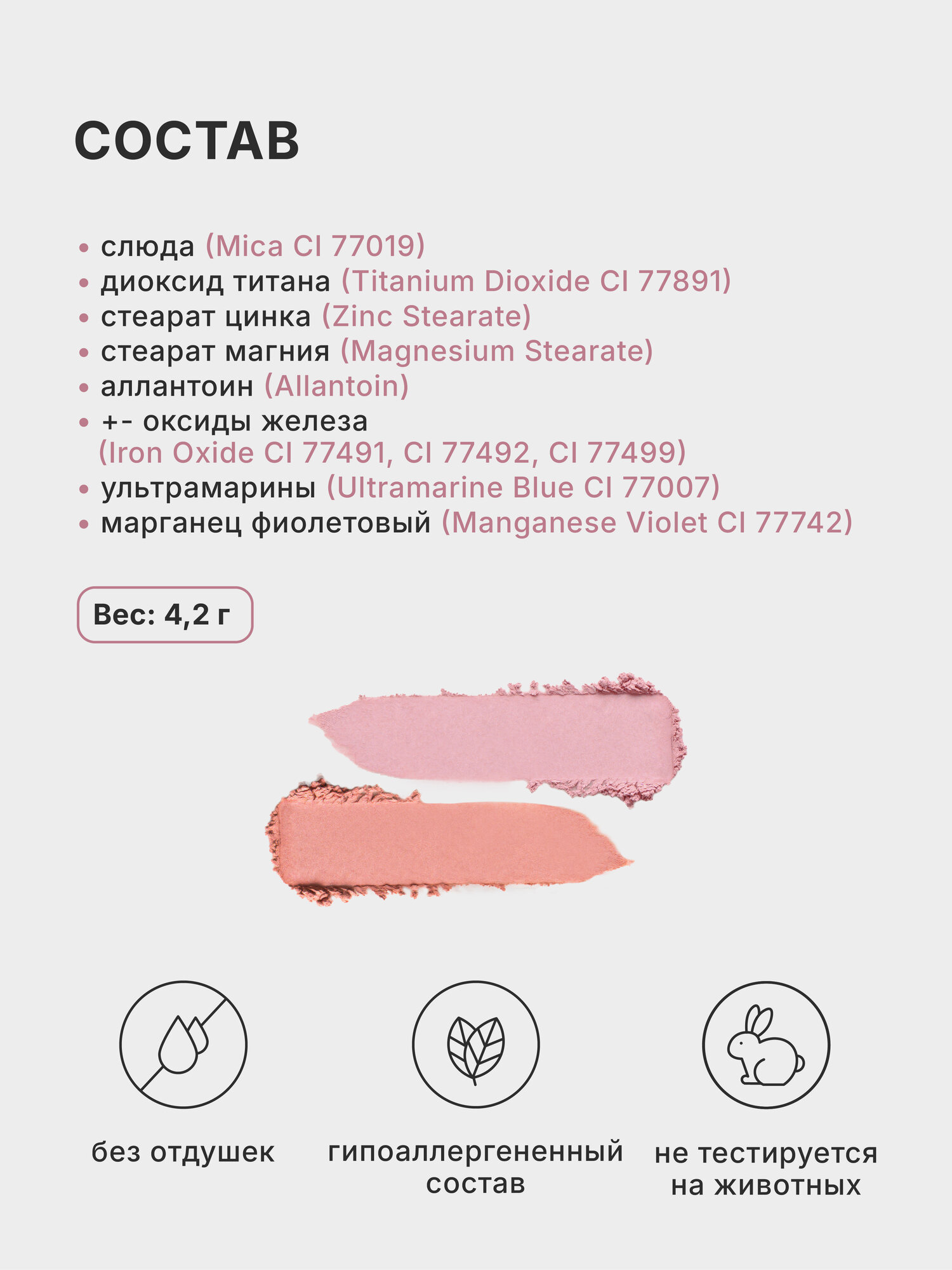 Kristall Minerals, Румяна матовые, цвет: В101 Розовый, 4,2г