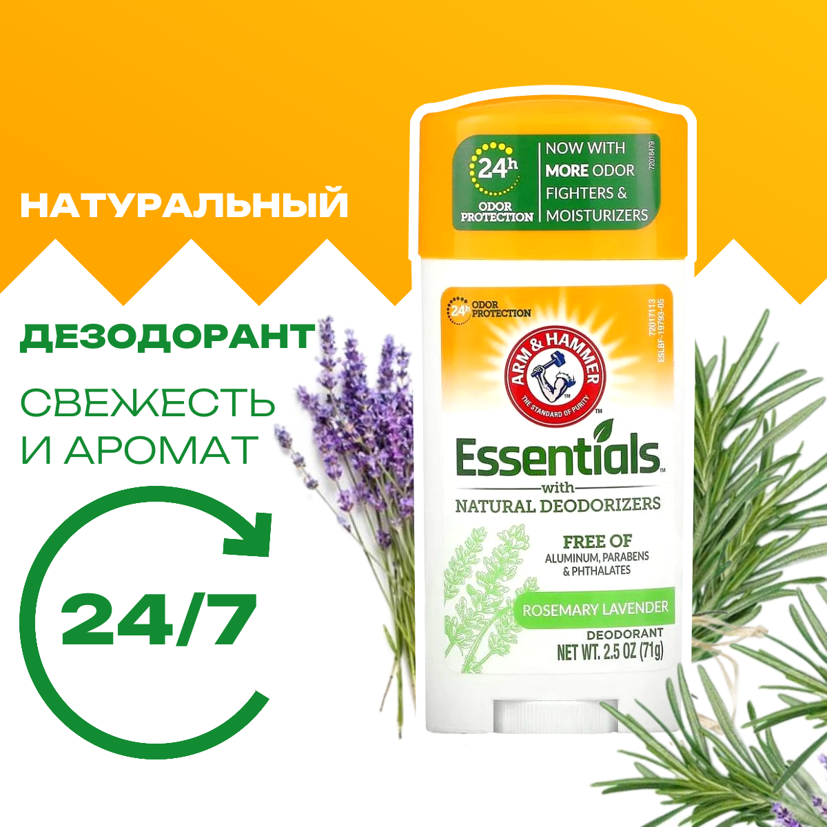 Essentials, дезодорант с натуральными дезодорирующими компонентами, Arm & Hammer, розмарин и лаванда, 71 г интересное:
