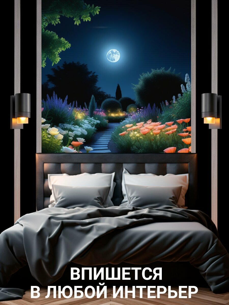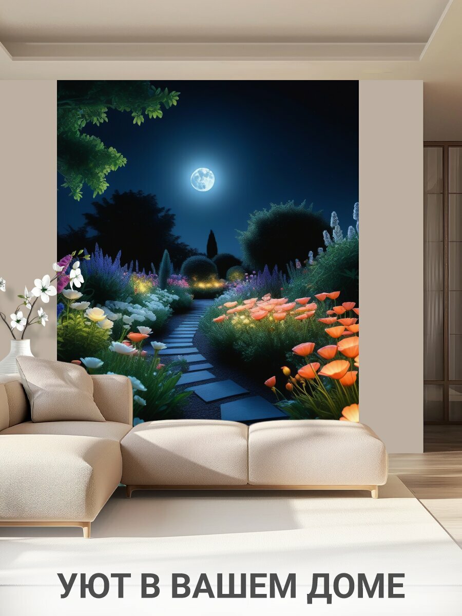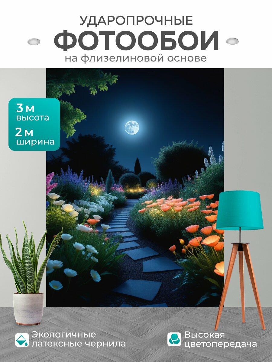 СохранитьФотообои моющиеся ударопрочные "Сад с цветами, освещенными лунным светом" 200x300 см. флизелиновые на стену интересное: