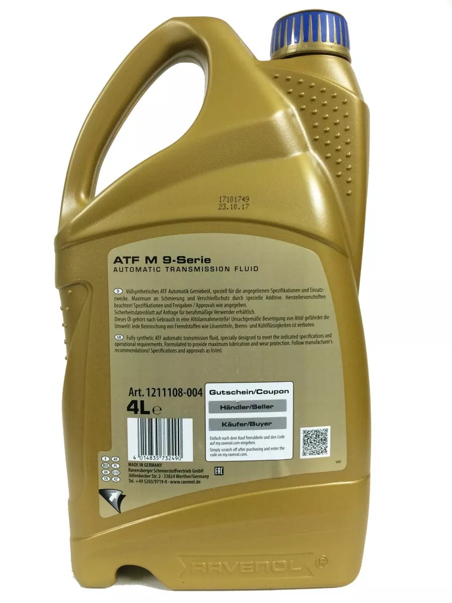 масло трансмиссионное ravenol atf m 9-serie 4 л 4014835732490