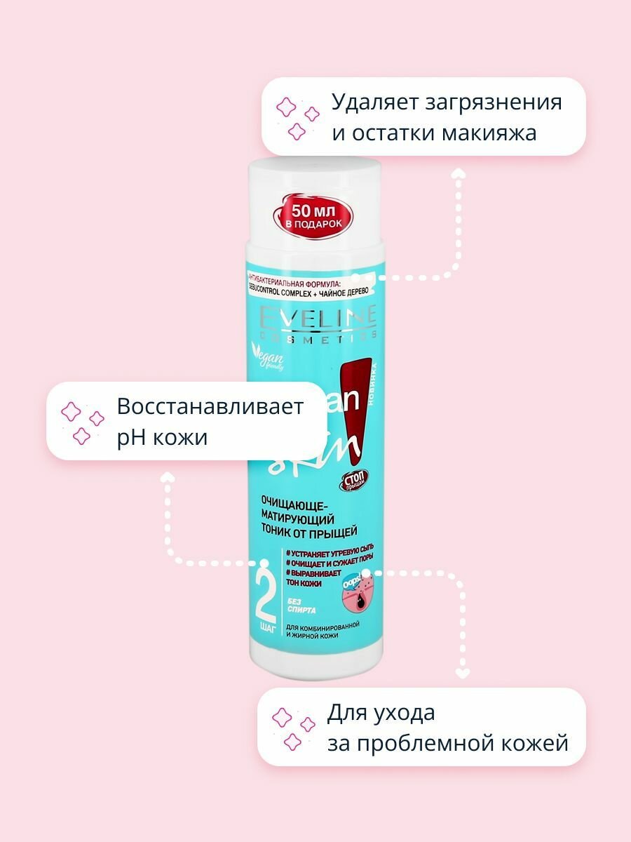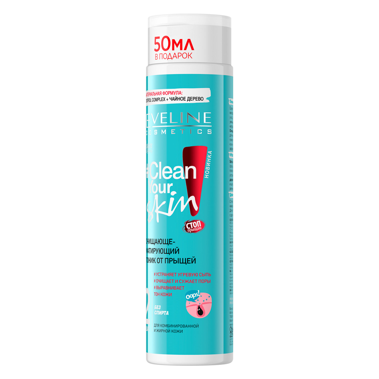 EVELINE Тоник для лица CLEAN YOUR SKIN очищающе-матирующий от прыщей, 225 мл