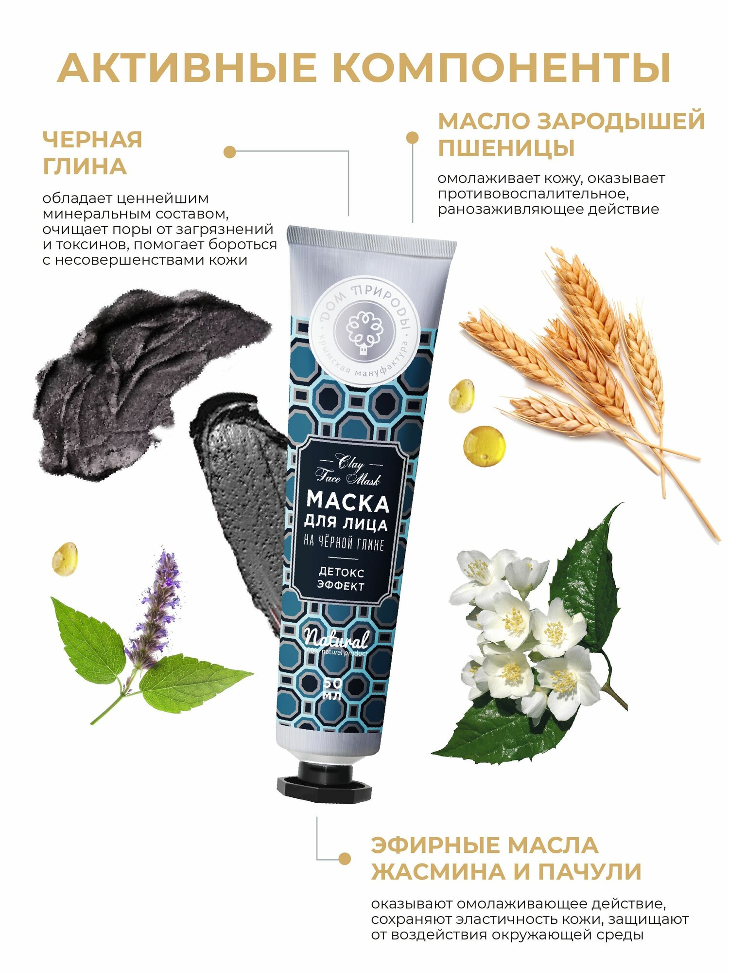 Маска для лица на черной глине "Детокс-эффект", Дом природы