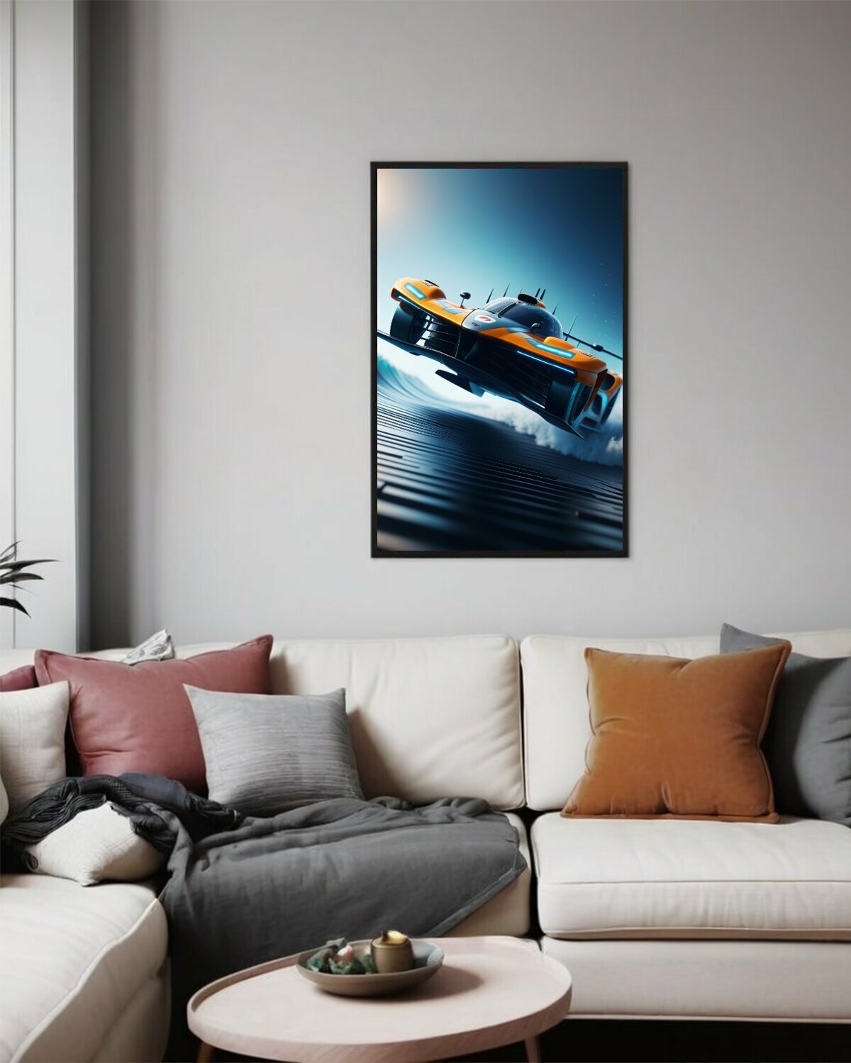 Постер "Космический корабль летящий через квадратные волны" 90 x 60 см. для интерьера на стену в тубусе