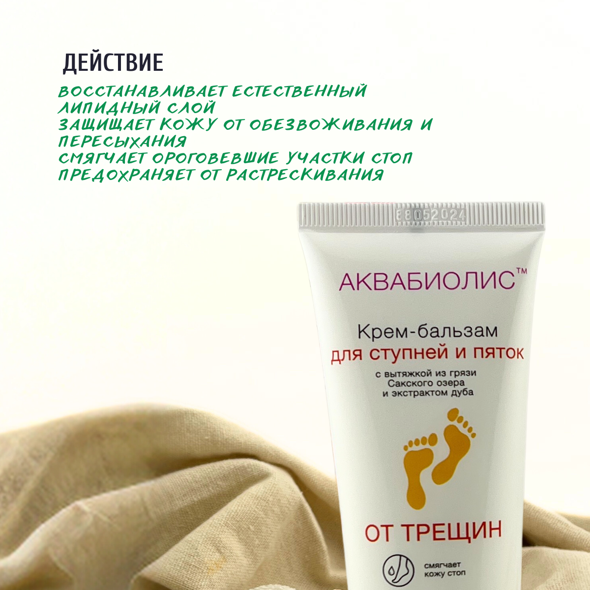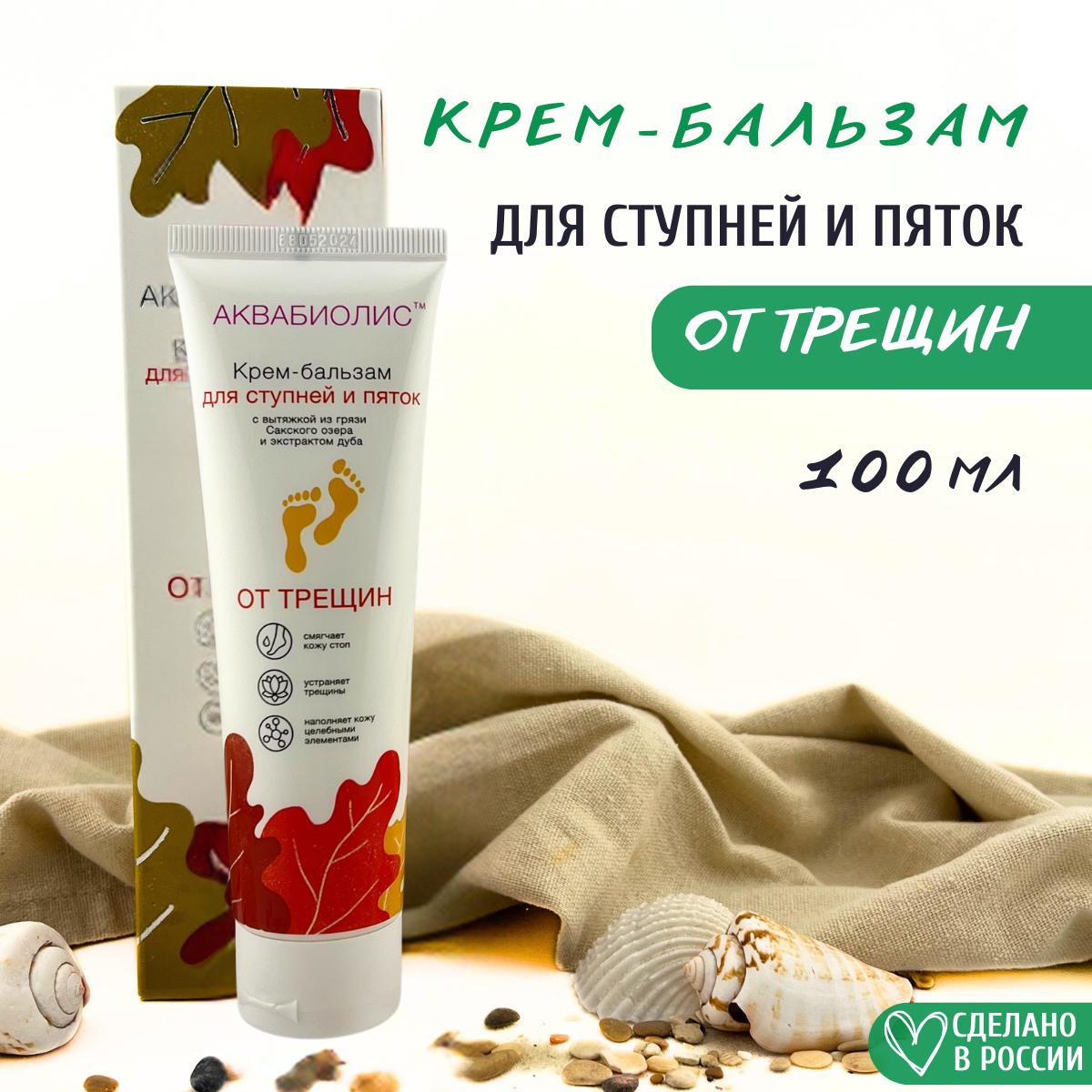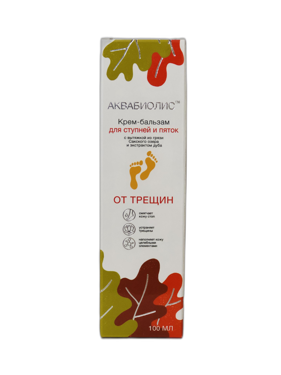 Аквабиолис Крем-бальзам для ступней и пяток "От трещин" на основе целебной грязи сакского озера, 100 мл